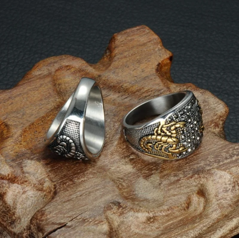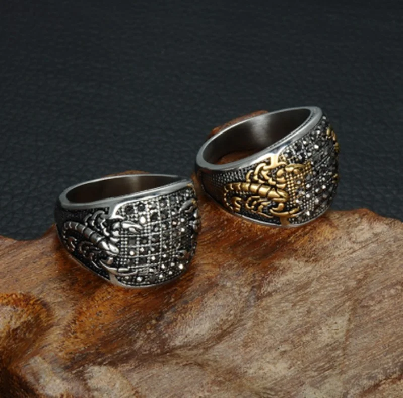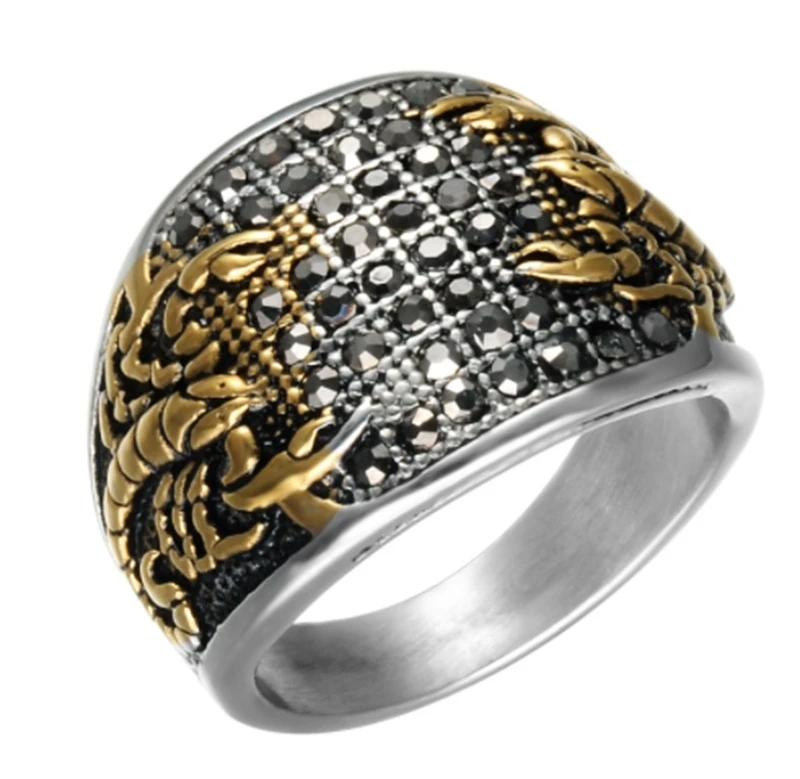 Мужские кольца с позолоченным узором в виде скорпиона, с кристаллами из циркония, в стиле панк, хип-хоп Вечерние