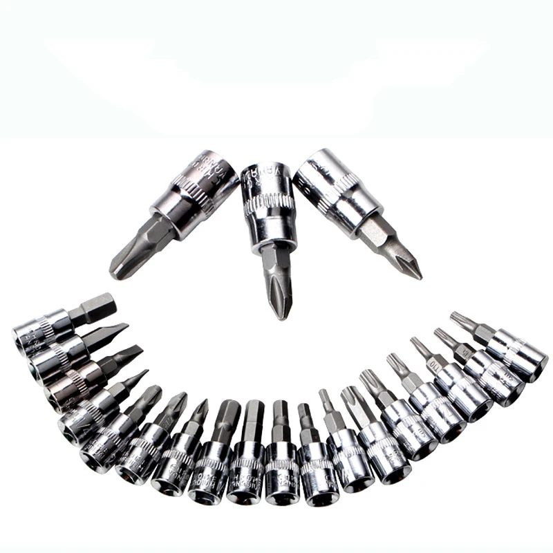 Тип цветка Шестигранная розетка: T10/T15/T20/T25/T30/T40Гнездо шестиугольника с плоской головкой: H3/H4/H5/H6/H7/H8Одно слово: S4/S5.5/S7Крест: PH1/PH2/PH3Рисовый слово: PZ1/PZ2/PZ3Два · 13 штук шестигранного гнезда 1/4"1 шт 1/4 "универсальный шарнир1 шт 1/4 "эластичный пост2 шт 1/4 "пост (50 мм, 100 мм)3 предмета в комплекте из l-образный шестигранный ключ (1,5-2-2,5 мм)1 шт 1/4 "слайдер бар1 шт 1/4 "интерфейс небольшой квадратный стержень1 шт 45-зуб 1/4 "quick-падающий ключ-трещотка1 ящик для инструментов