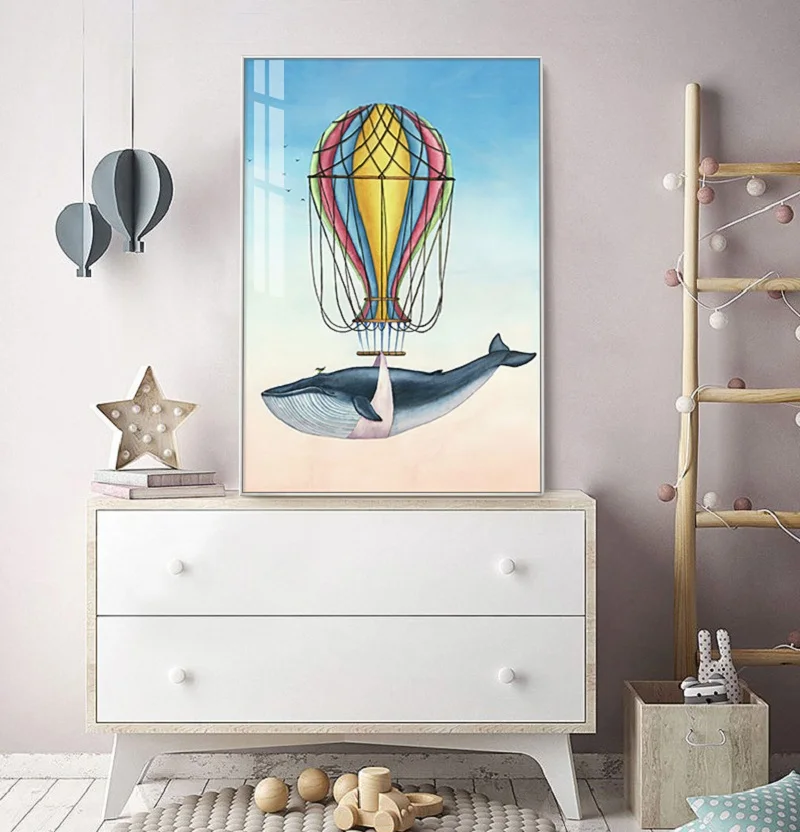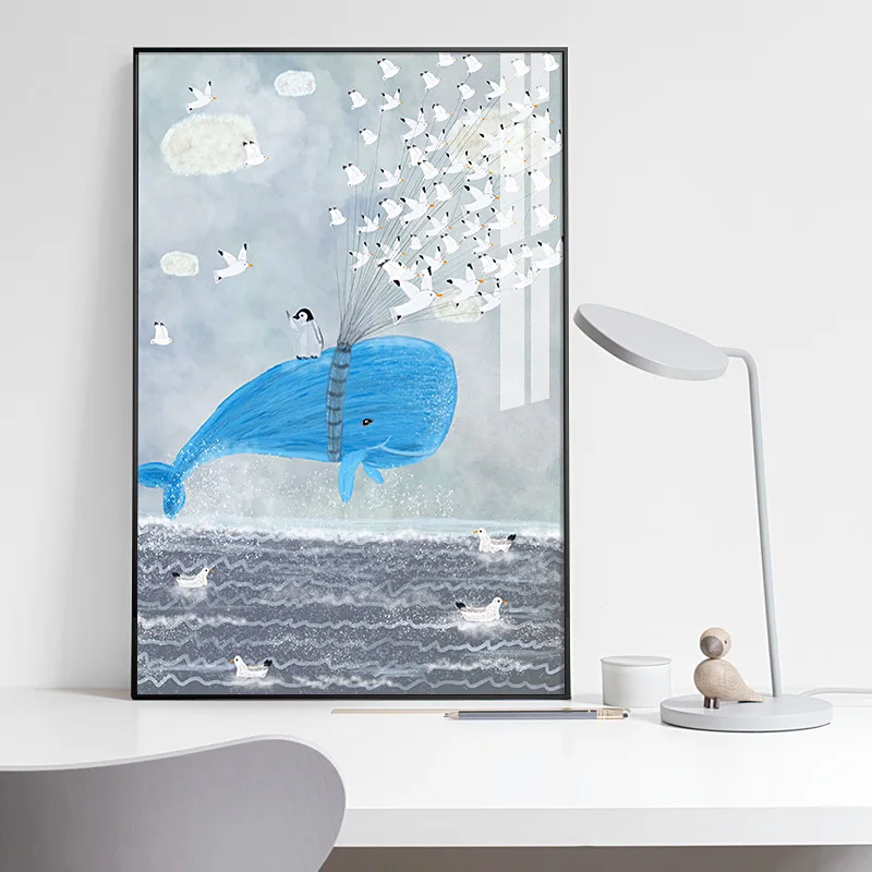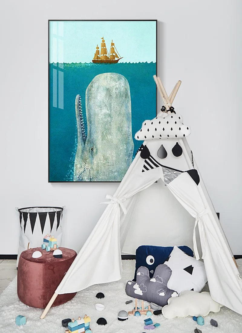 Настенный постер с рисунком Кита для детской комнаты, Картина на хо...