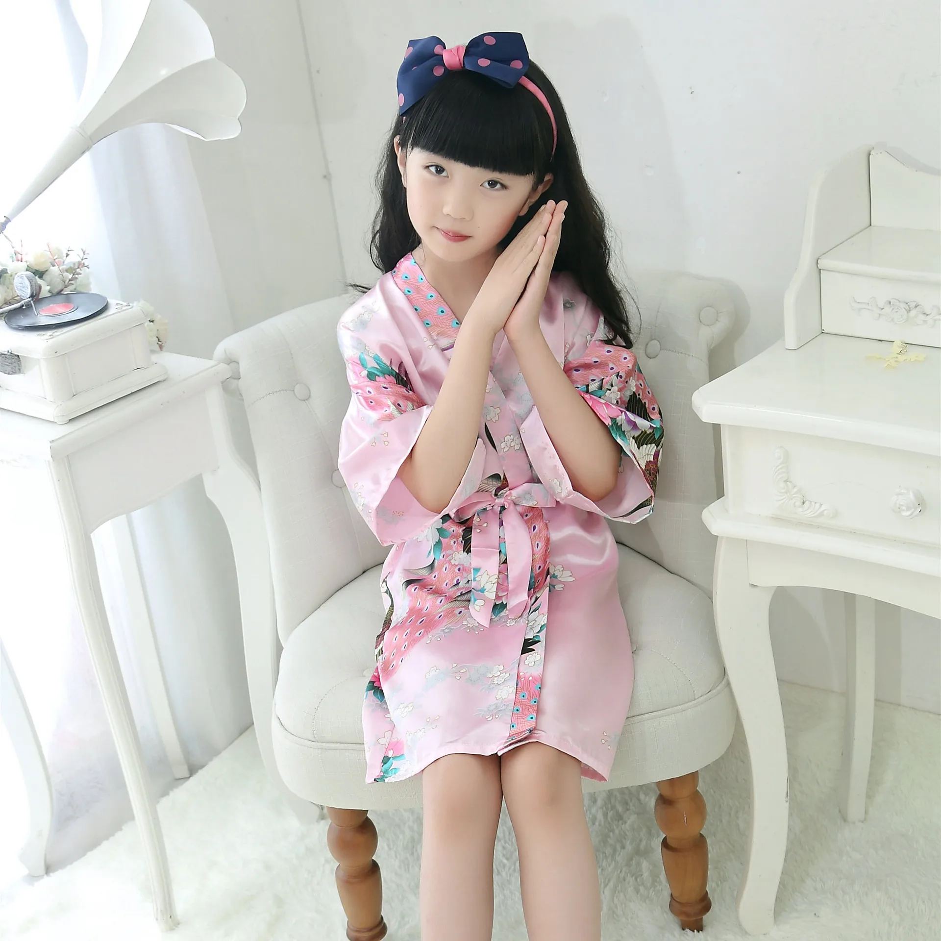 BZELновый детский шелковый халат с цветочным рисунком, кимоно, хала...