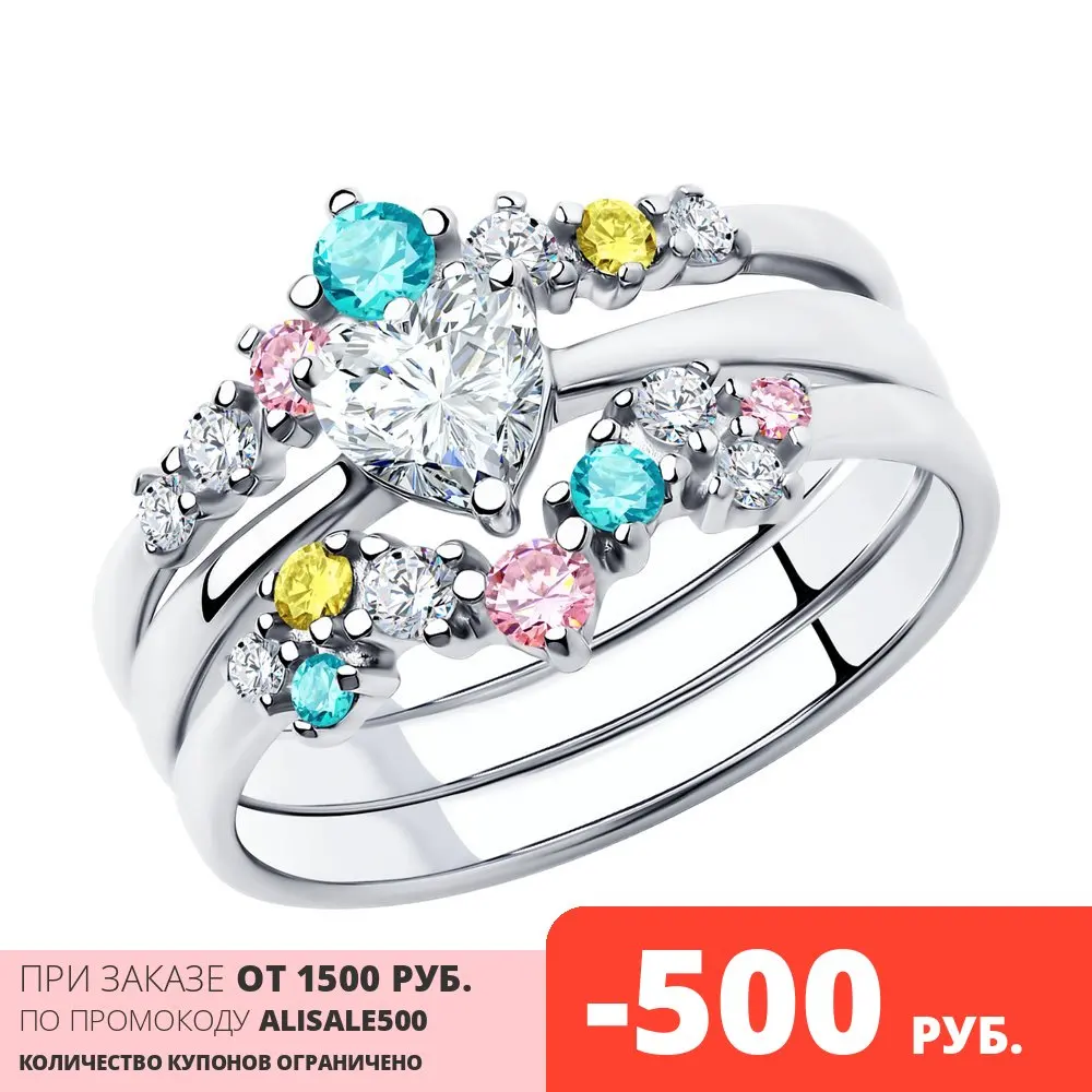 Кольцо SOKOLOV из серебра с миксом камней, Серебро, 925, Женское, О...