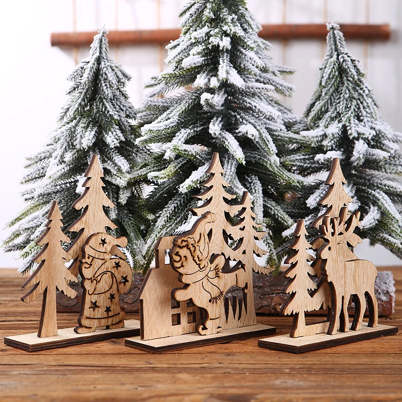 Деревянные рождественские украшения, Санта-Клаус, лось, подвесные украшения, рождественские игрушки, подарок, Рождественское украшение, домашний стол