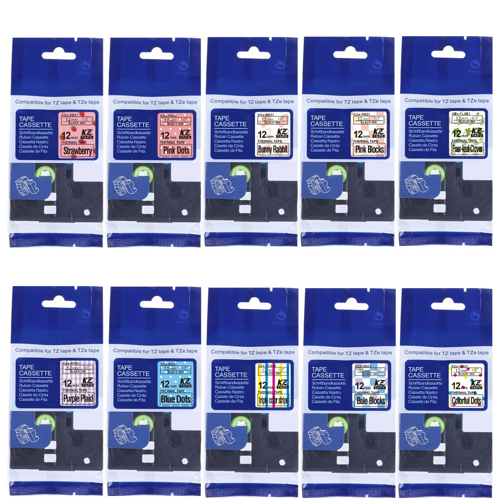KZE 10 шт. 6912 мм, разноцветная фотолента, совместимая с Brother P...