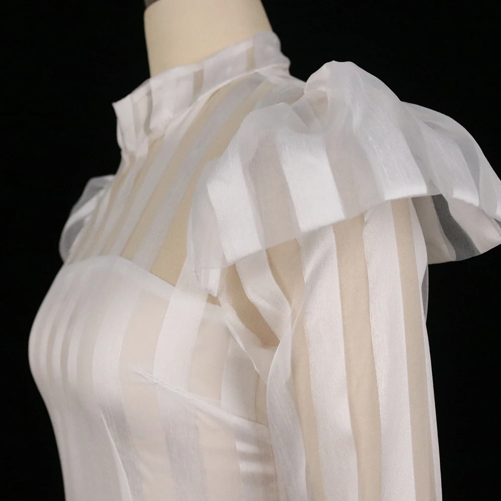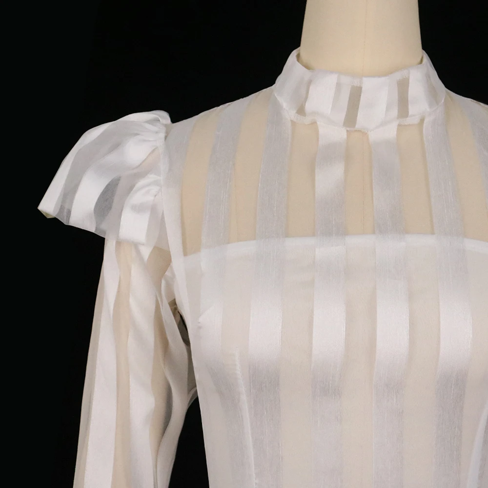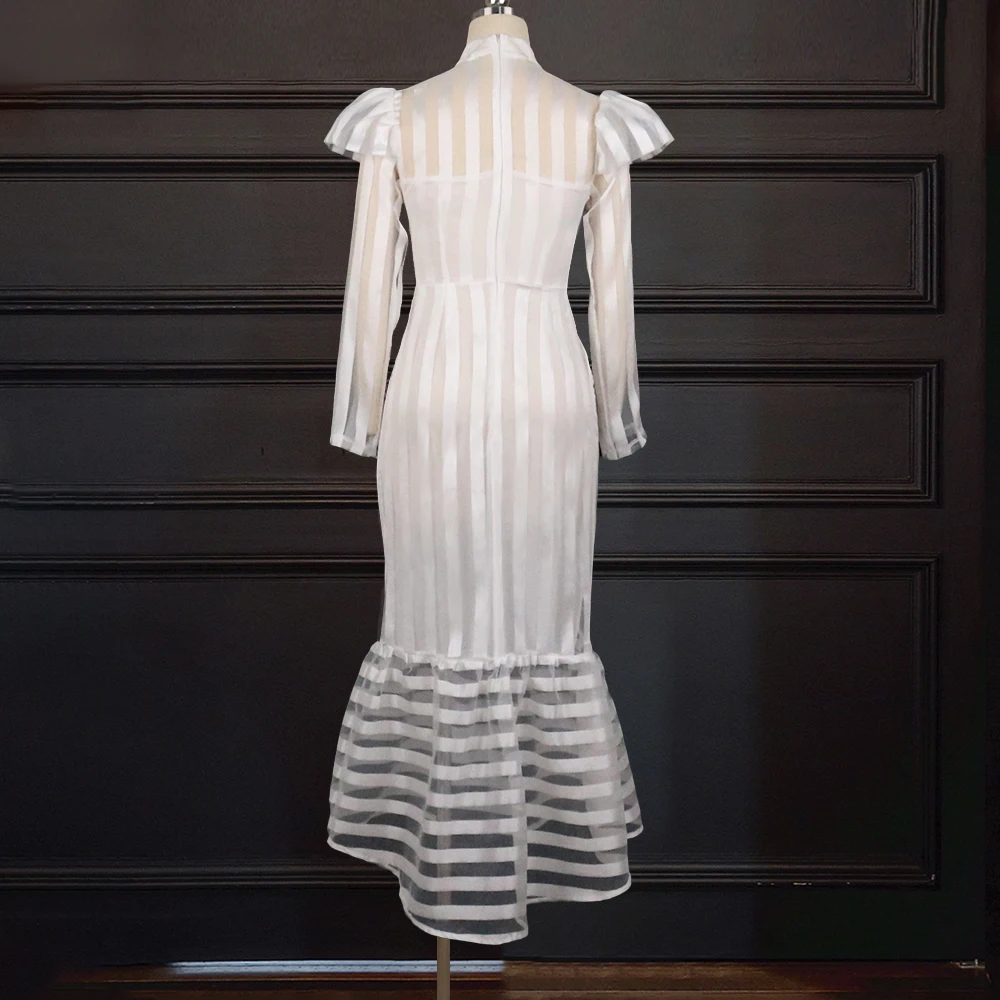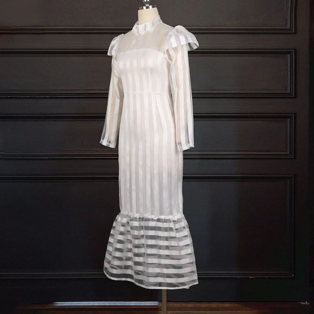 Женское Прозрачное платье с длинным рукавом, белое платье-миди в полоску, Элегантная Дамская нарядная одежда на осень и день рождения, XXXL, 2022