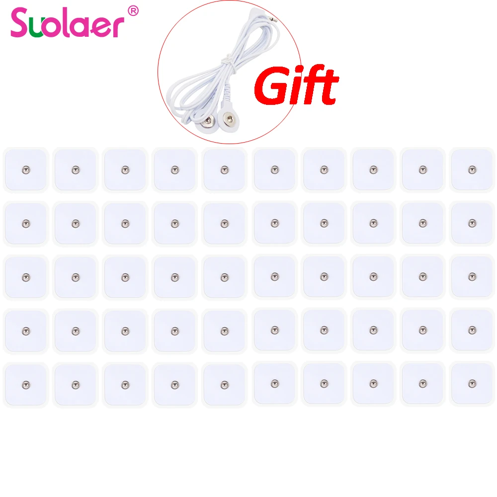 50 шт. проводящие подушечки электроды используются для десятковEMS Размер блока 4 см * 4 см с кнопкой 2,5 мм оптовая продажа