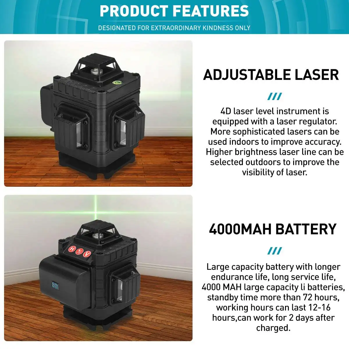 Самонивелирующийся лазерный уровень 4D, 1216 линий, с цифровым аккумулятором, с настенным кронштейном и подъемным держателем, Сверхмощный лазерный луч, Европейская версия