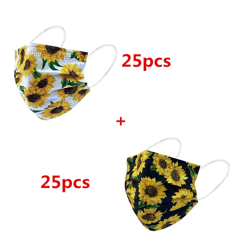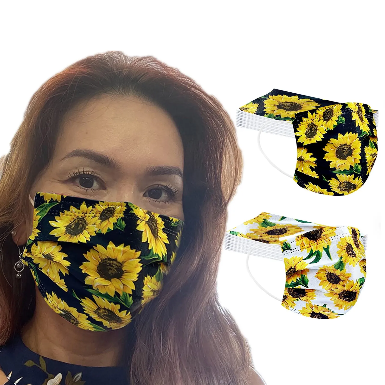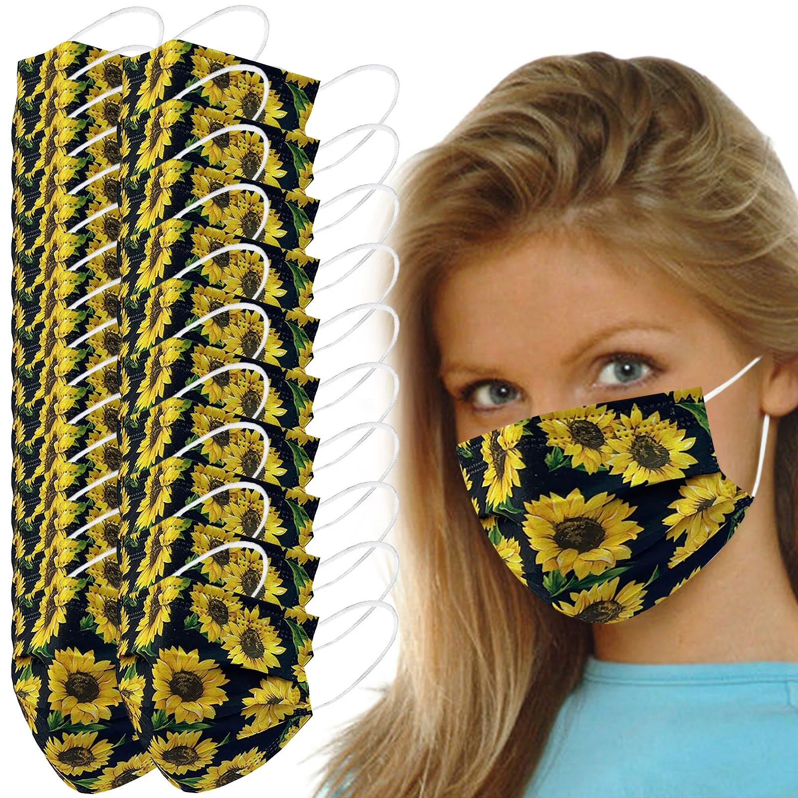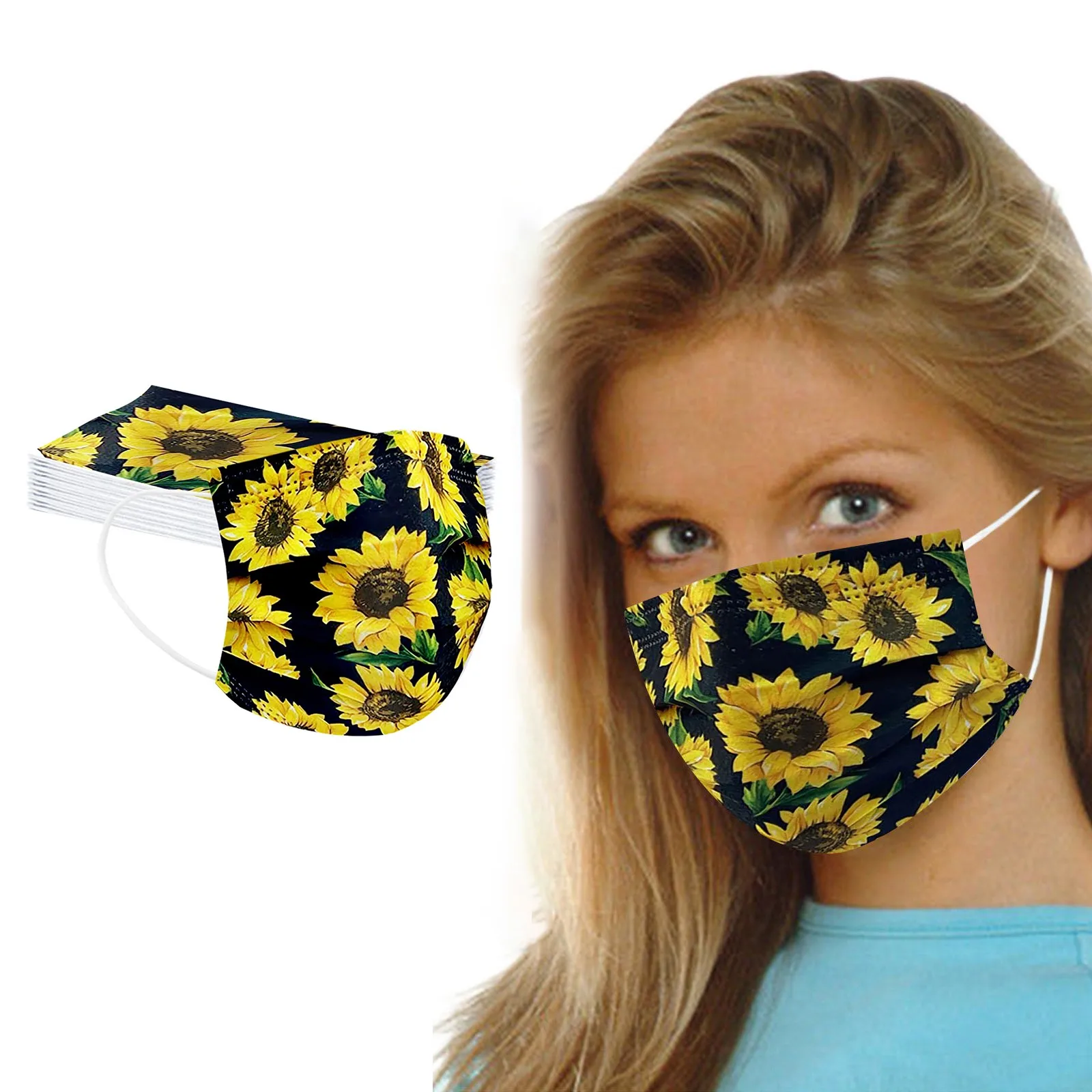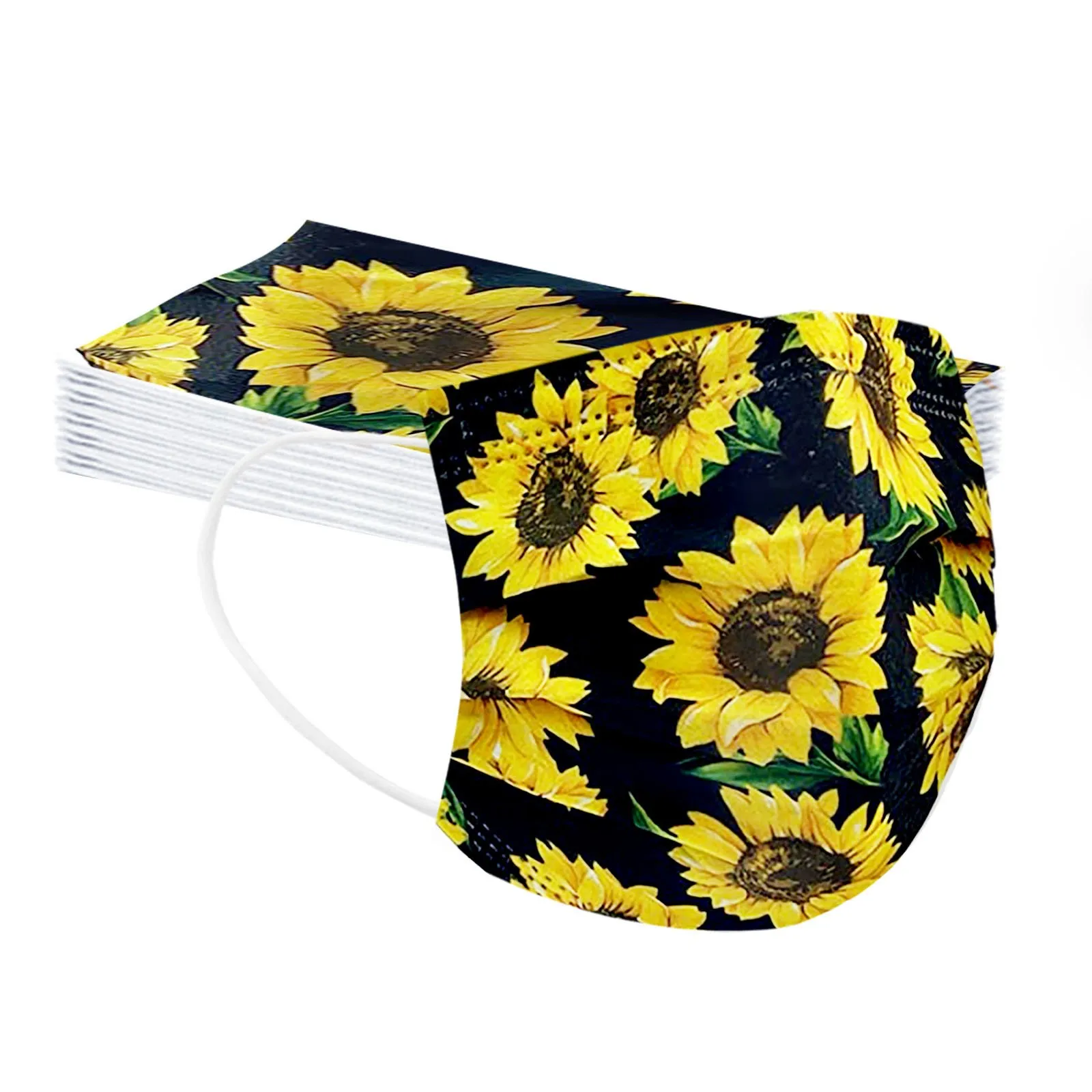 50 шт., одноразовые маски для взрослых, с принтом подсолнухов
