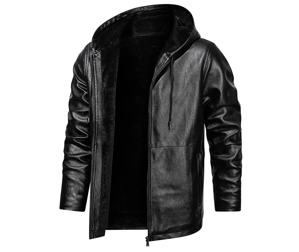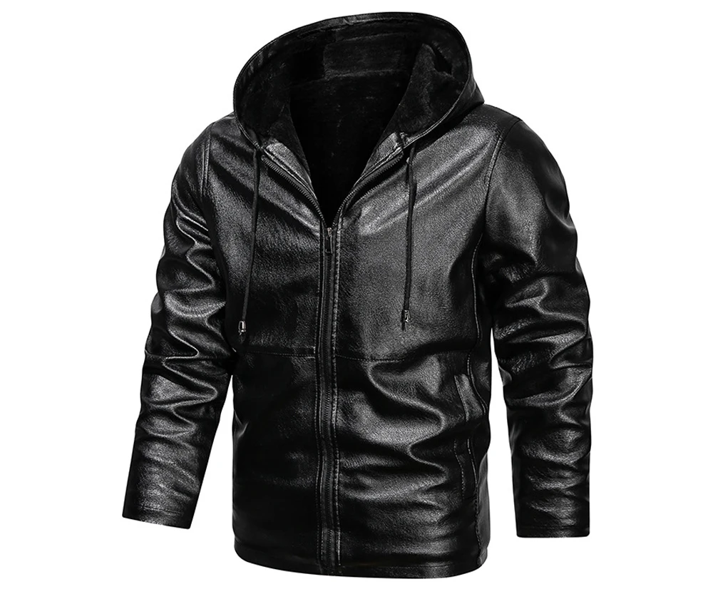 Куртка мужская зимняя из искусственной кожи, на флисе, с капюшоном