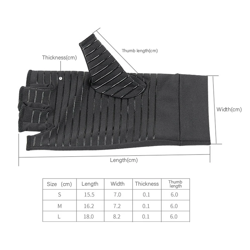 1 пара компрессионных перчаток из медного волокна, ручные медные перчатки для облегчения боли в суставах на половину пальцев, противоскользящие терапевтические перчатки