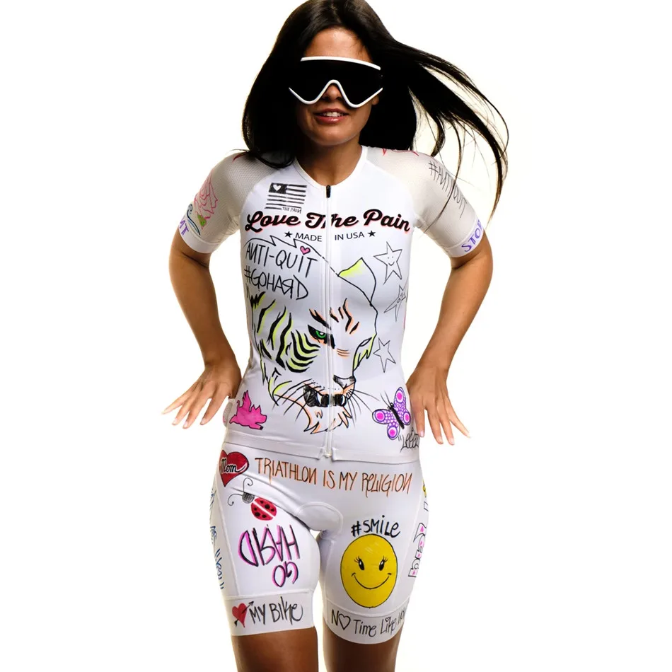 Женский комплект из джерси и шортов Love The Pain, летний велосипедный костюм с коротким рукавом и гелевыми вставками, дышащая велосипедная одежда для горных велосипедов