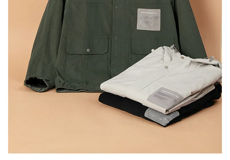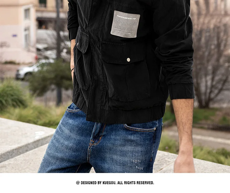 Мужская осенняя куртка-карго KUEGOU, черная куртка-карго с нескольк...