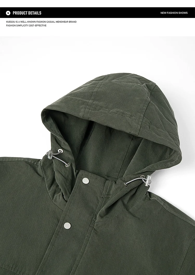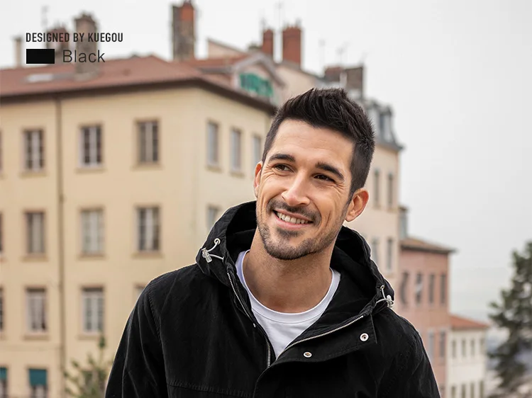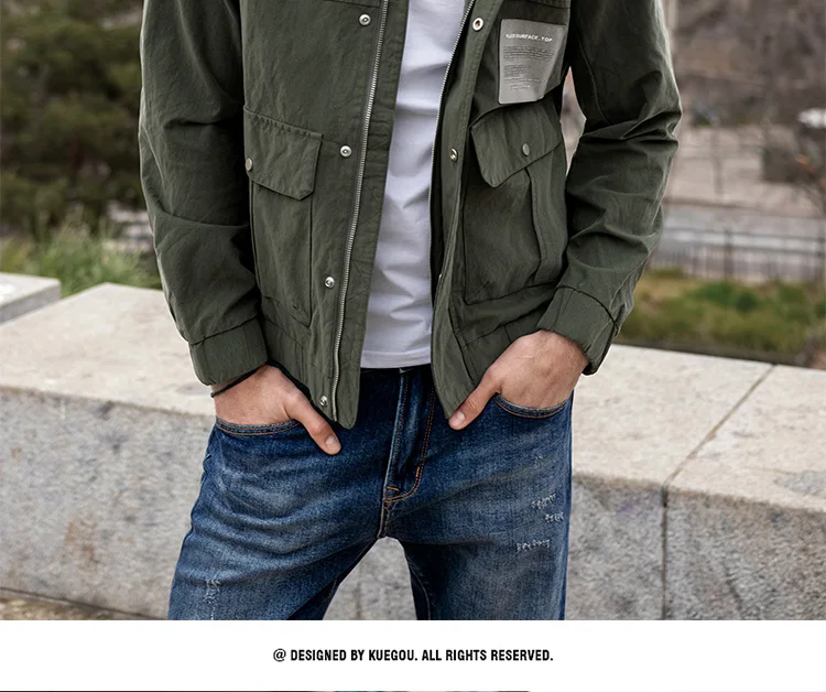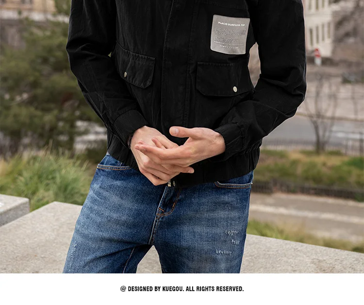 Мужская куртка с двумя карманами KUEGOU, черная Повседневная куртка...