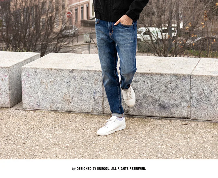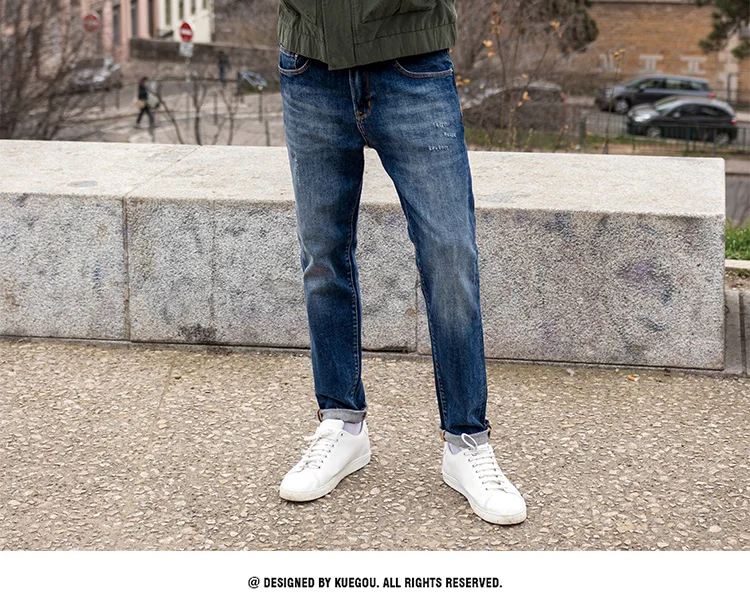 KUEGOU хлопчатобумажная одежда мужские рубашки стильное джинсовое п...