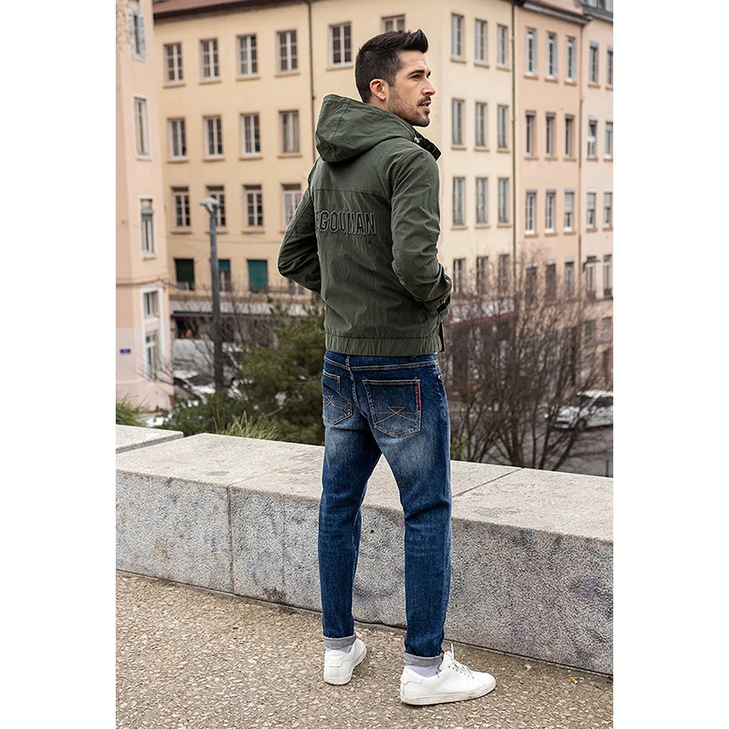 Мужская осенняя куртка с капюшоном, с вышивкой