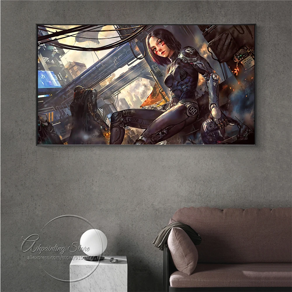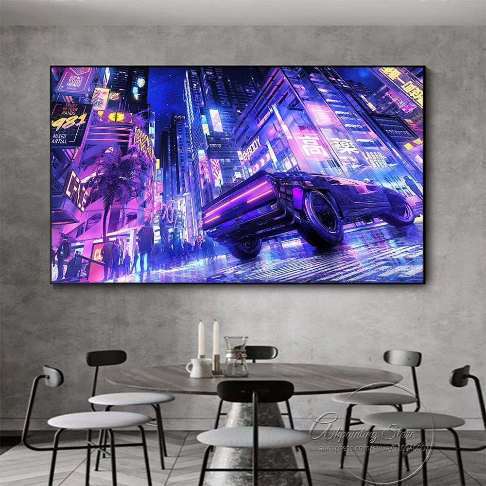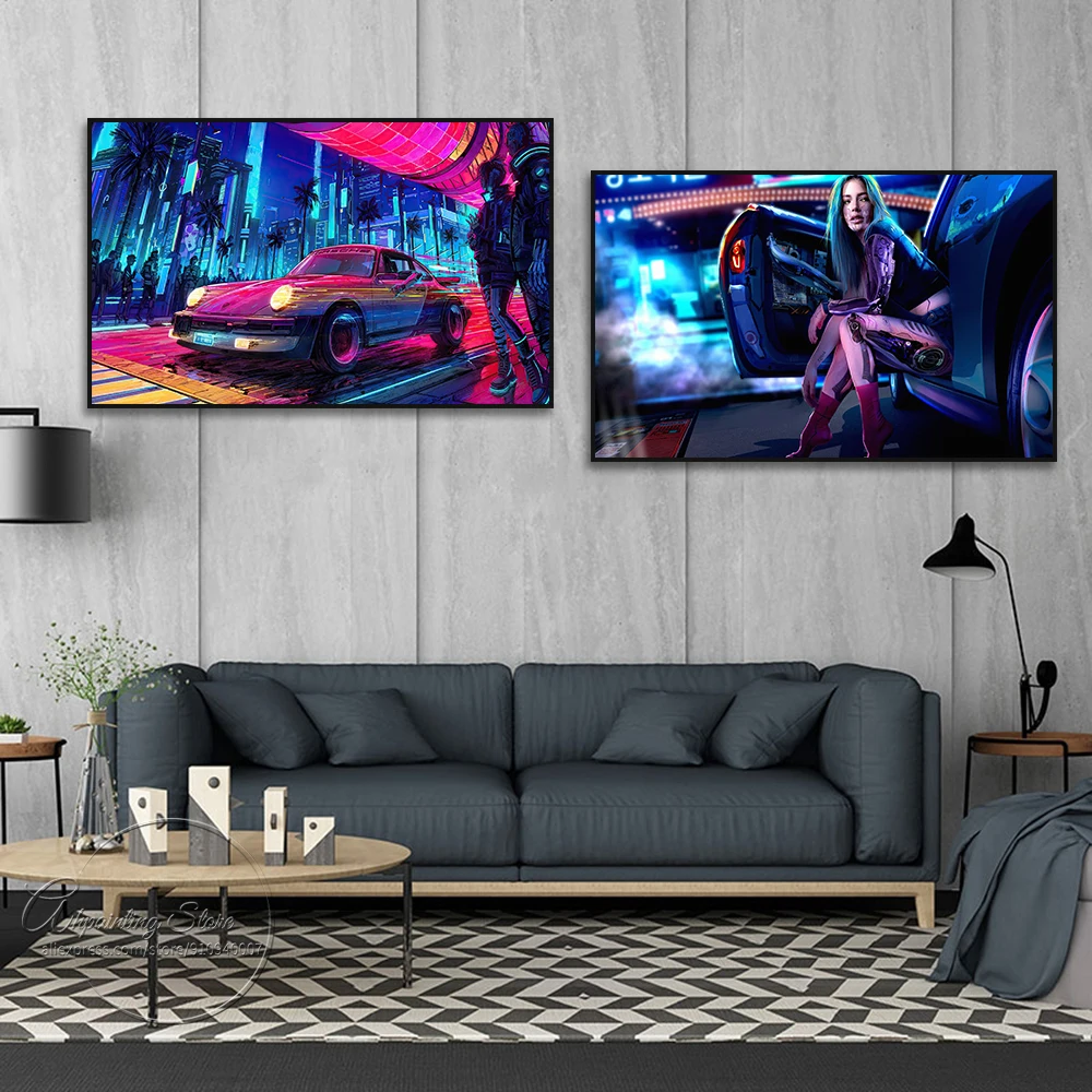 Киберпанк плакат будущее робот автомобиль улица Картина на холсте настенное искусство картины игровая комната Домашний декор сетка