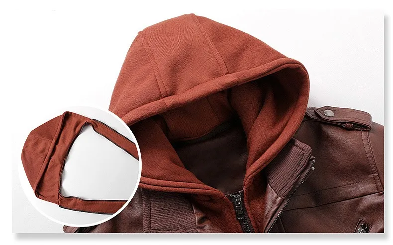 Мужская кожаная куртка с капюшоном, однотонная теплая байкерская ку...