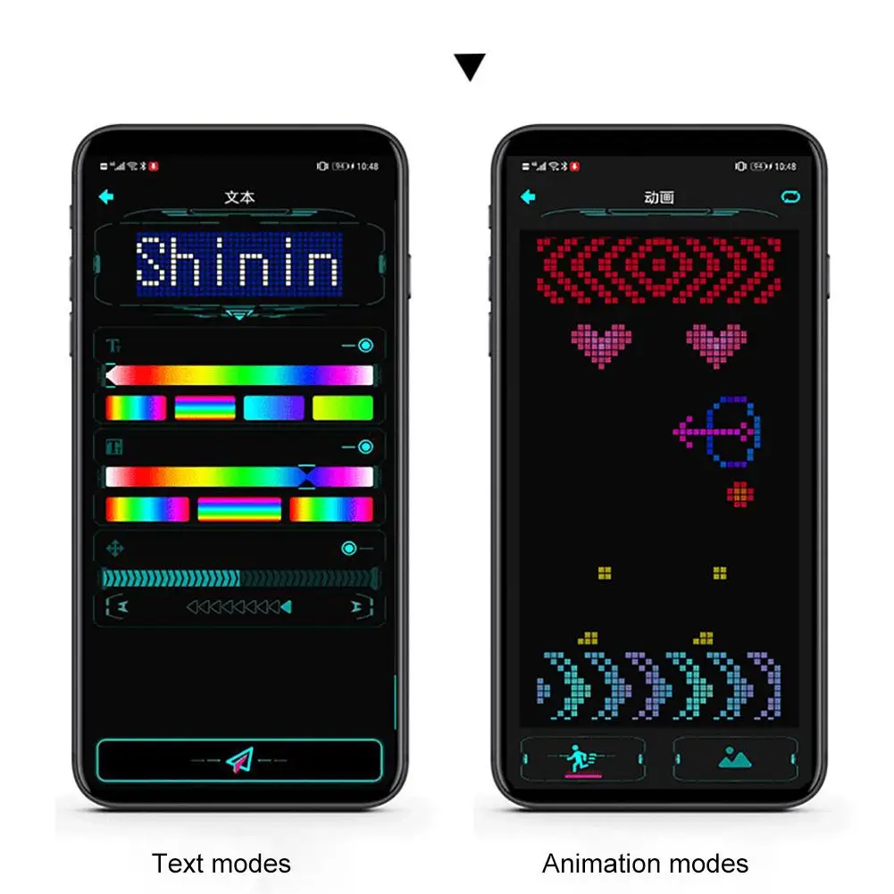 4 варианта: Есть 4 варианта светодиодный Очки: текст, анимация, ритм музыки и магазины типа "сделай сам" в стиле «граффити» режим. Это очень интересные и крутые очки. Интерфейс анимации содержит 22 анимации и одну анимационную петлю. Библиотека изображений содержит 20 фотографий.Полноцветный светодиодный дисплей смарт-очки: разноцветные светодиодные Bluetooth очки, используемые для вечеринок, карнавалов, ночных клубов, Хэллоуина. Ультра-стильный и легко носить с собой, его можно использовать в любом месте, где вы не можете себе представить.Легко Применение: светодиодный светильник-светящиеся очки управления светодиодный с помощью приложения. Мобильный телефон может сканировать qr-код в руководстве или искать «блестящие очки» в APP store/для загрузки Google Play, затем включите очки и Bluetooth на мобильный телефон для подключения устройства. Когда очки соединены с Bluetooth, вы можете выбрать или DIY шаблоны, которые вы хотите отобразить на очках. Включая многоязычную поддержку, включая английский/испанский/китайский/японский/немецкий/французский/Корейский и т. д.Usb-зарядка: зарядка через usb-интерфейс, зарядка в течение 3 часов, 5 часов использования. Состояние зарядки отображает символ батареи, и зарядка автоматически завершена.Лучший подарок: блестящие неоновые Карнавальные очки изготовлены из высококачественного АБС-пластика, без ультрафиолетового излучения, включая 432 мягких светодиода.1. Характеристики:Производительность батареи: 902040 полимерный аккумуляторМатериал корпуса: Прозрачный АБС-пластик и высокояркий пластикВходное напряжение/ток: 5 В/1 АТип зарядки: usb-интерфейс для зарядкиВремя зарядки: 3 часаВремя использования: 5 часовРазмер очков: около 175*75*51 мм (после складывания)/6,89*2,95 * 2.01inВес нетто: около 100 гЕмкость аккумулятора: 700 мАчПиксели: 12*36Ламповые бусины: 1010RGB Ламповые бусиныКоличество лампочек: 432 шт.Поддерживаемые языки: 10 типовВходные символы: 20 китайский/40 английскийПоддержка многоязычного редактирования: английский, немецкий, французский, русский, корейский, голландский, португальский, испанский2. Технические характеристикиНоминальная емкость этого продукта 700 мАч.Длительный срок службы батареи, до 500 циклов или более.И этот продукт должен использоваться вместе с блестящими очками.Он принимает высокую мощность, высокий светильник, долговечный 432 ламповый бисер, 1010 RGB светодиодный ламповый бисер.12*36 пикселей.Защита от зарядки: состояние зарядки показывает символ батареи, и зарядка завершена автоматически.При зарядке нажмите кнопку, чтобы показать состояние питания и зарядки.3. Введение интерфейсаНазвание приложения: блестящие очкиРуководство по эксплуатации1. Мобильный телефон может отсканировать следующий qr-код для загрузки установки или перейти в приложение для Google Play/app Store, найдите «блестящие очки» для загрузки, отсканируйте приложение для загрузки qr-кода2. Включите приложение "Блестящие очки", Включите BluetoothИнструкция:1. При первом открытии приложения у вас есть варианты разрешения, выберите разрешение2. Если телефон Android не может найти Bluetooth, проверьте, открывается ли местоположение.3. Оборудование подключения:Нажмите «+» → выберите очки для управления ими → нажмите на соединение → нажмите на пустую область, чтобы войти в основной интерфейсGLASSES-XXXXXX-это имя устройства для поиска4. ИЗМЕНЕНИЕ ТЕКСТАТип текста: нажмите н