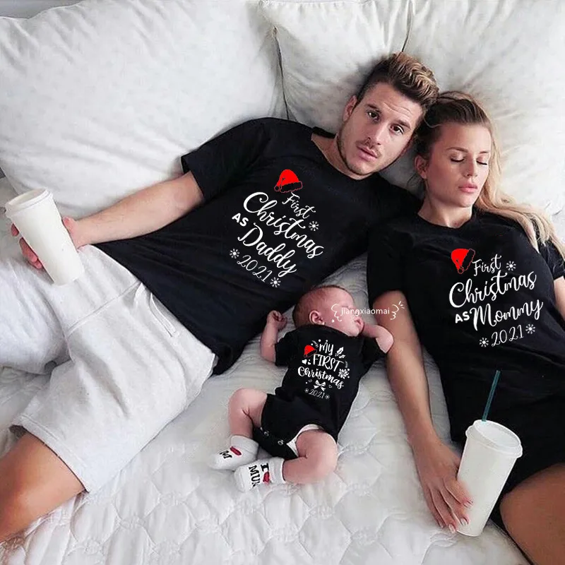 Мой первый Рождество как папа мама сестра брат семья одинаковые Смешные хлопковые наряды для папы мама я рождественские наряды
