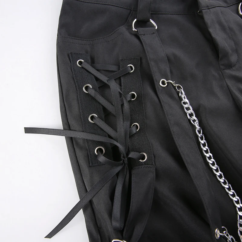 Брюки-карго женские, черные, широкие, с цепочкой, в стиле гот-Молл