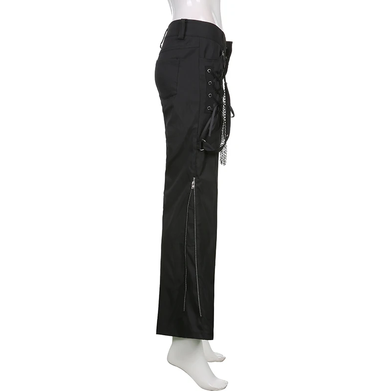 Женские брюки-карго Waatfaak, черные широкие штаны с заниженной талией, на молнии, с цепочкой, в готическом стиле