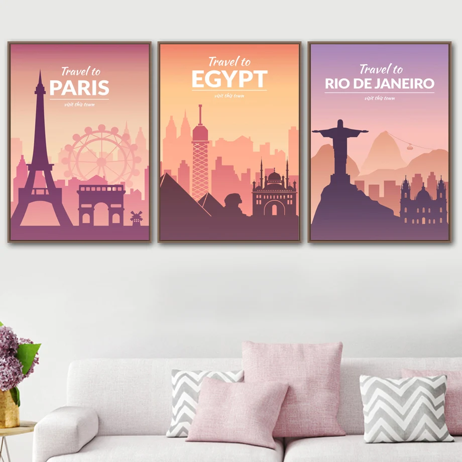 Настенное искусство Париж Нью-Йорк рома путешествия винтажный принт плакаты Современный домашний декор Бохо холст картины декор для гостиной