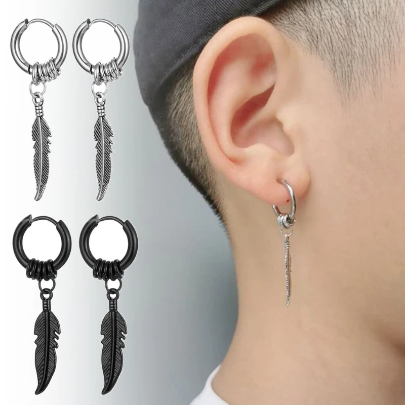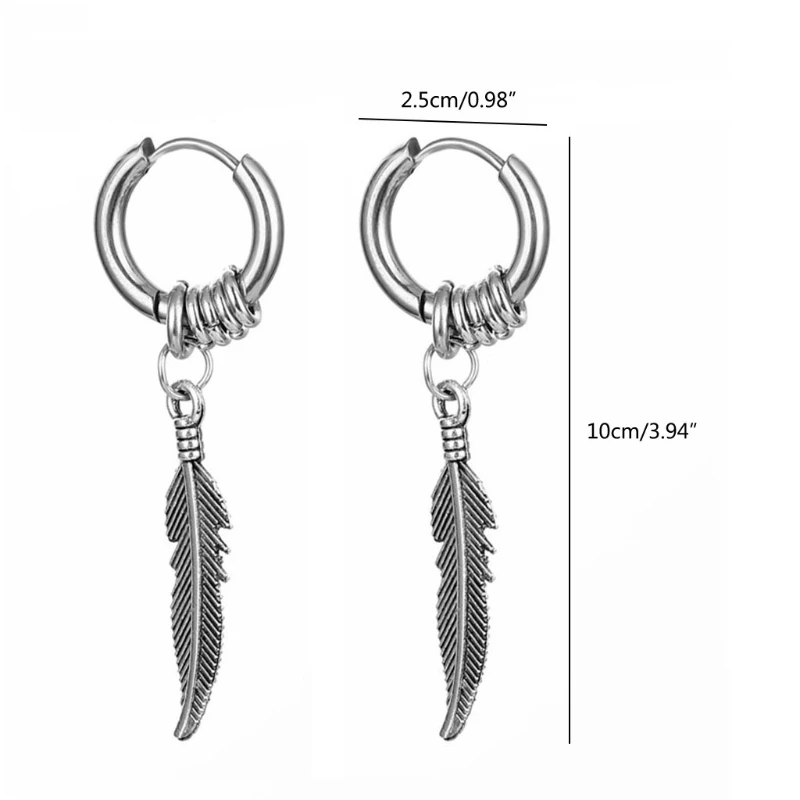 J60E панк, Винтажный дизайн, перьевые серьги-кольца для женщин и мужчин, ювелирные аксессуары, черные нержавеющие перьевые серьги, новинка, подарок