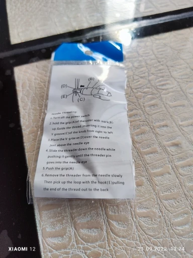 Для заправки нитей она может помочь пропустить нить через игольное ушко удобно, в случае плохого глаза или плохого освещения; Для вставки, она надежно удерживает иглы, чтобы предотвратить падение во время замены игл.
