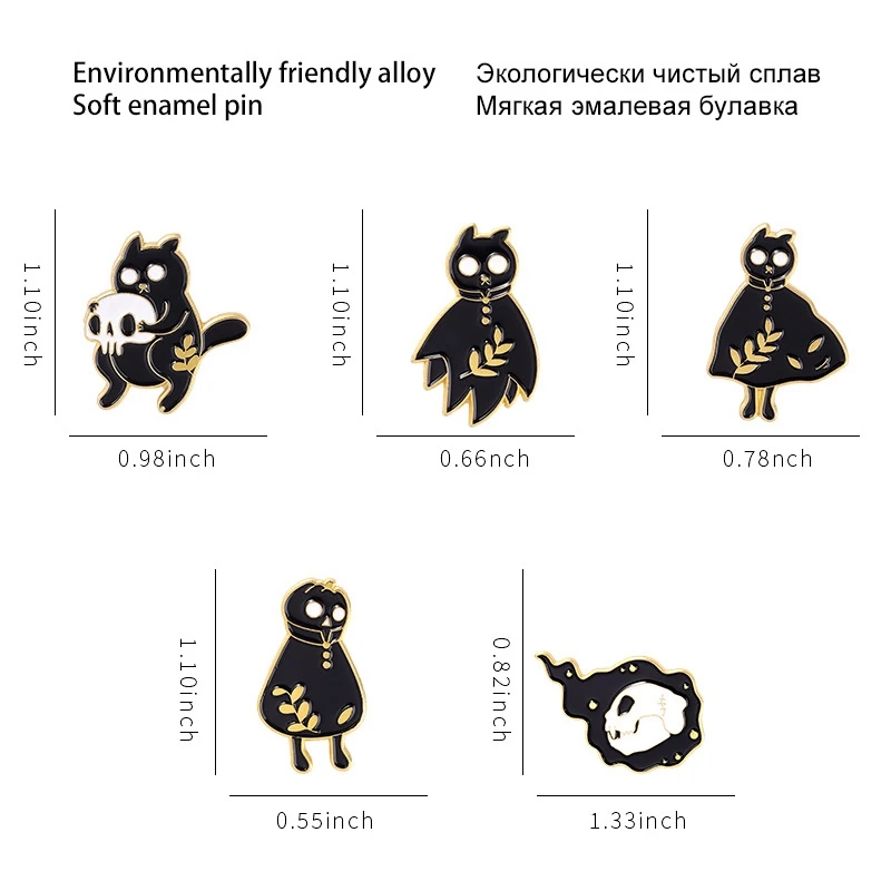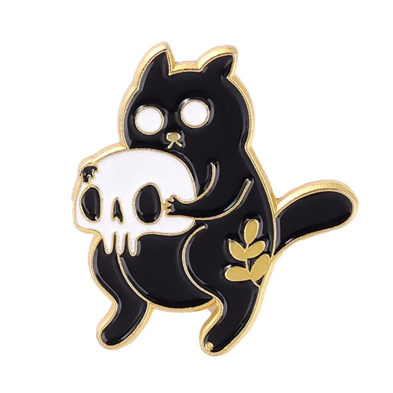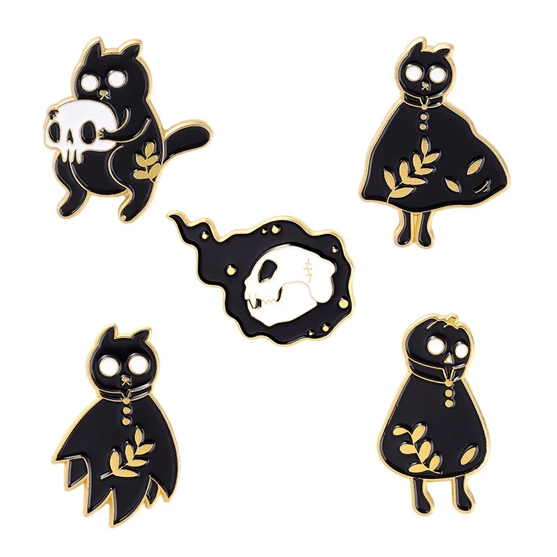 Эмалированные булавки в готическом стиле с призраком, котом, черным черепом, скелетом, демоном, броши на лацкан на Хэллоуин, панк, значки на булавке, ювелирные изделия, подарок, оптовая продажа