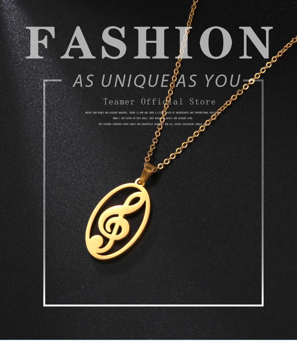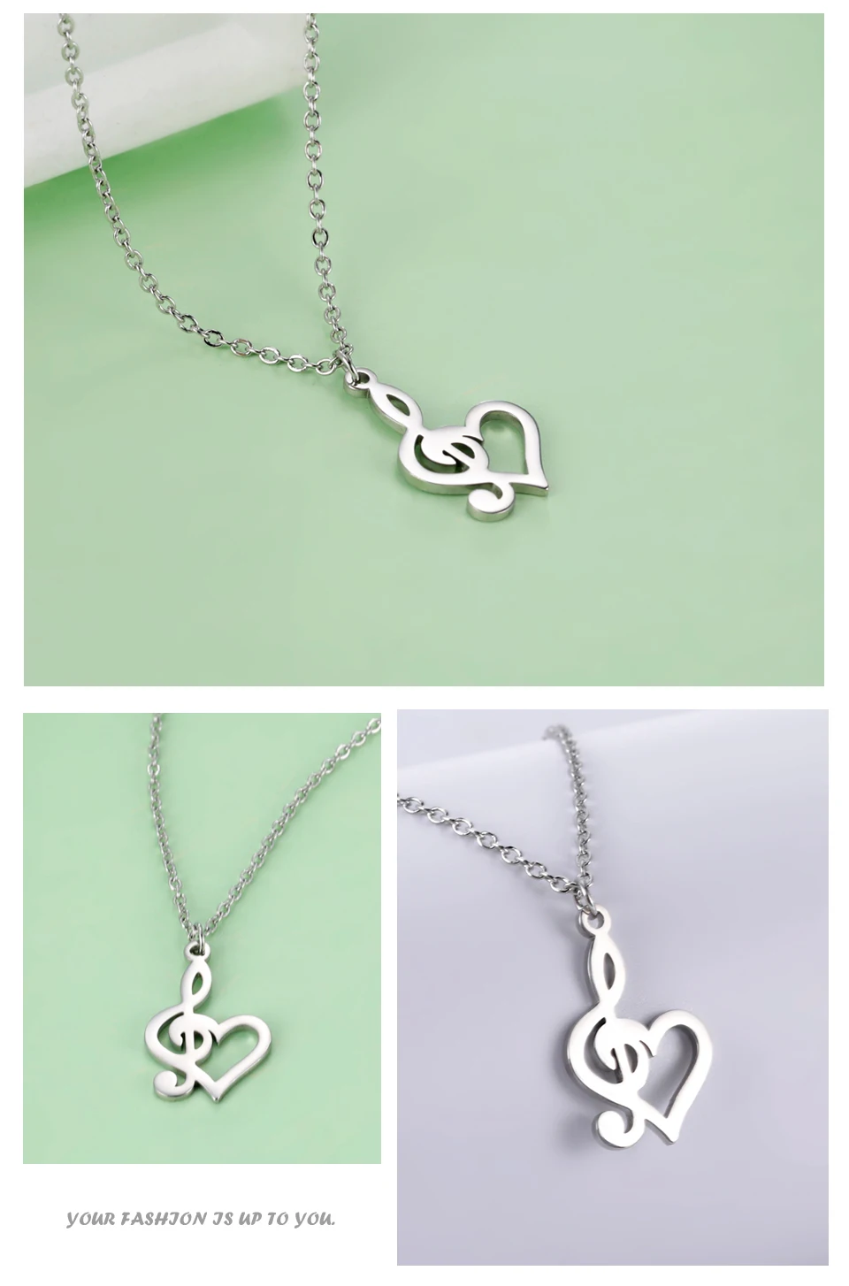 Teamer Ожерелье из нержавеющей стали, подвеска в форме сердца с музыкальной нотой для женщин, цепочка для ключей, Очаровательная бижутерия, романтический подарок для любимого