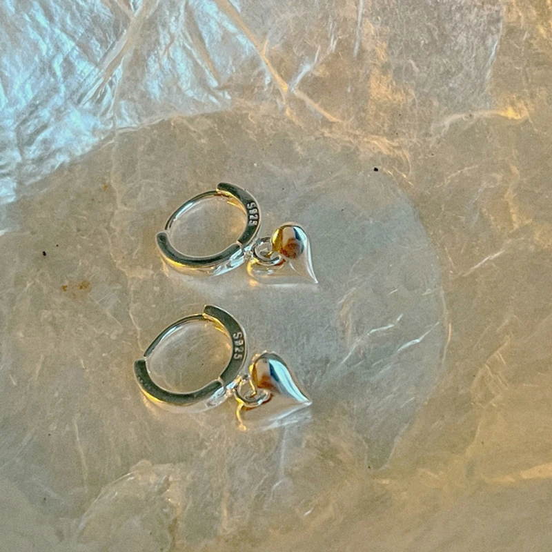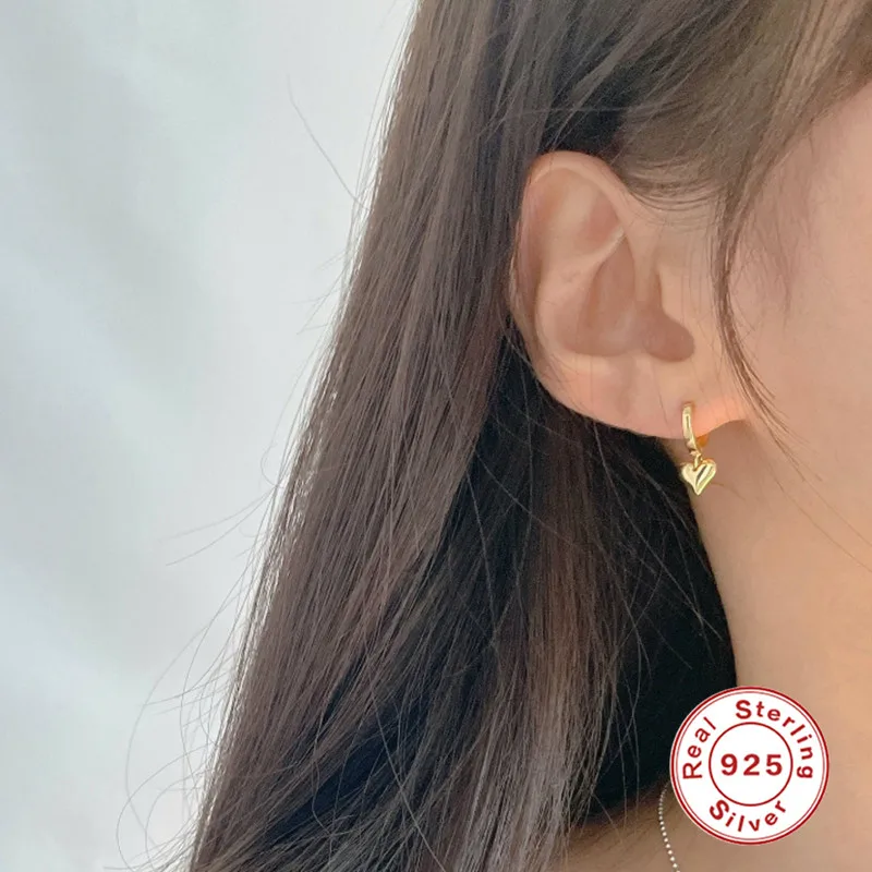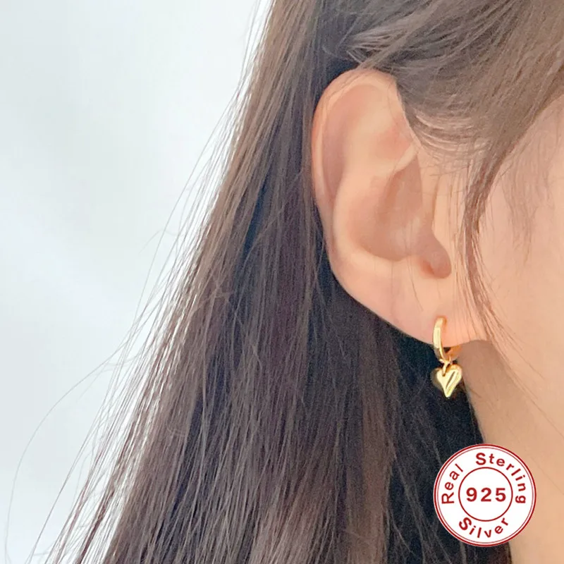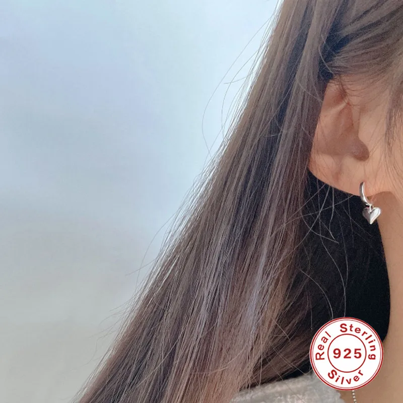 Женские серьги-кольца из серебра 925 пробы, с сердечками
