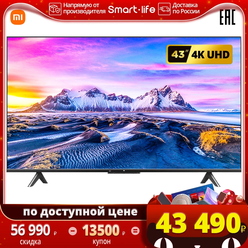 Xiaomi Телевизор 43 inch Mi TV P1 43 Smart TV 4K Ultra HD LED Android Q Television L43M6-6ARG