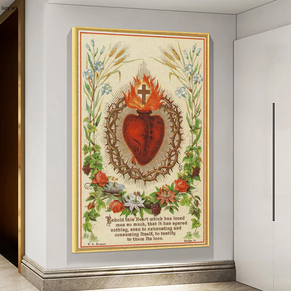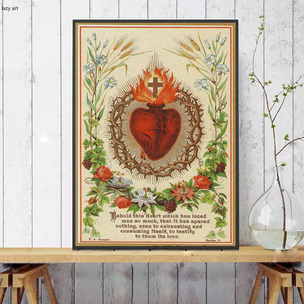 Картина на холсте с изображением Священного Сердца Иисуса, настенный постер с Мэри для домашнего декора гостиной