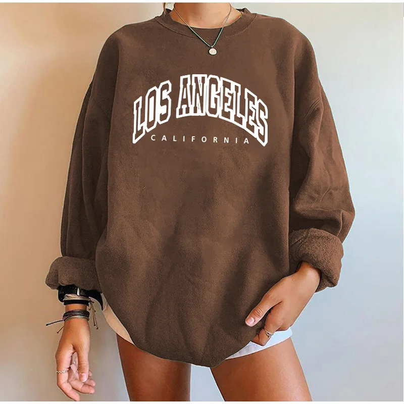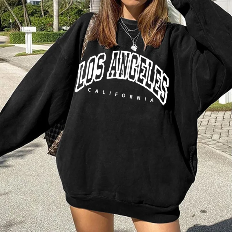 Женская Толстовка Оверсайз с круглым вырезом Losangeles California, осенние толстовки с буквенным принтом, Женский пуловер, флисовый топ с открытыми плечами