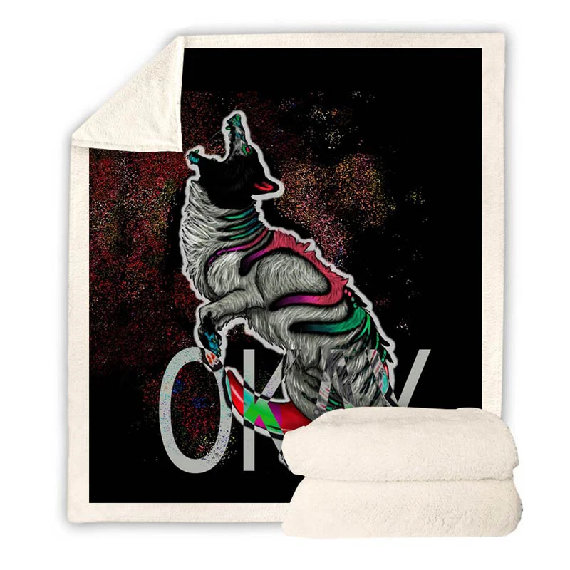 Психоделические шерпа одеяла для кровати животное шерпа одеяло сине...