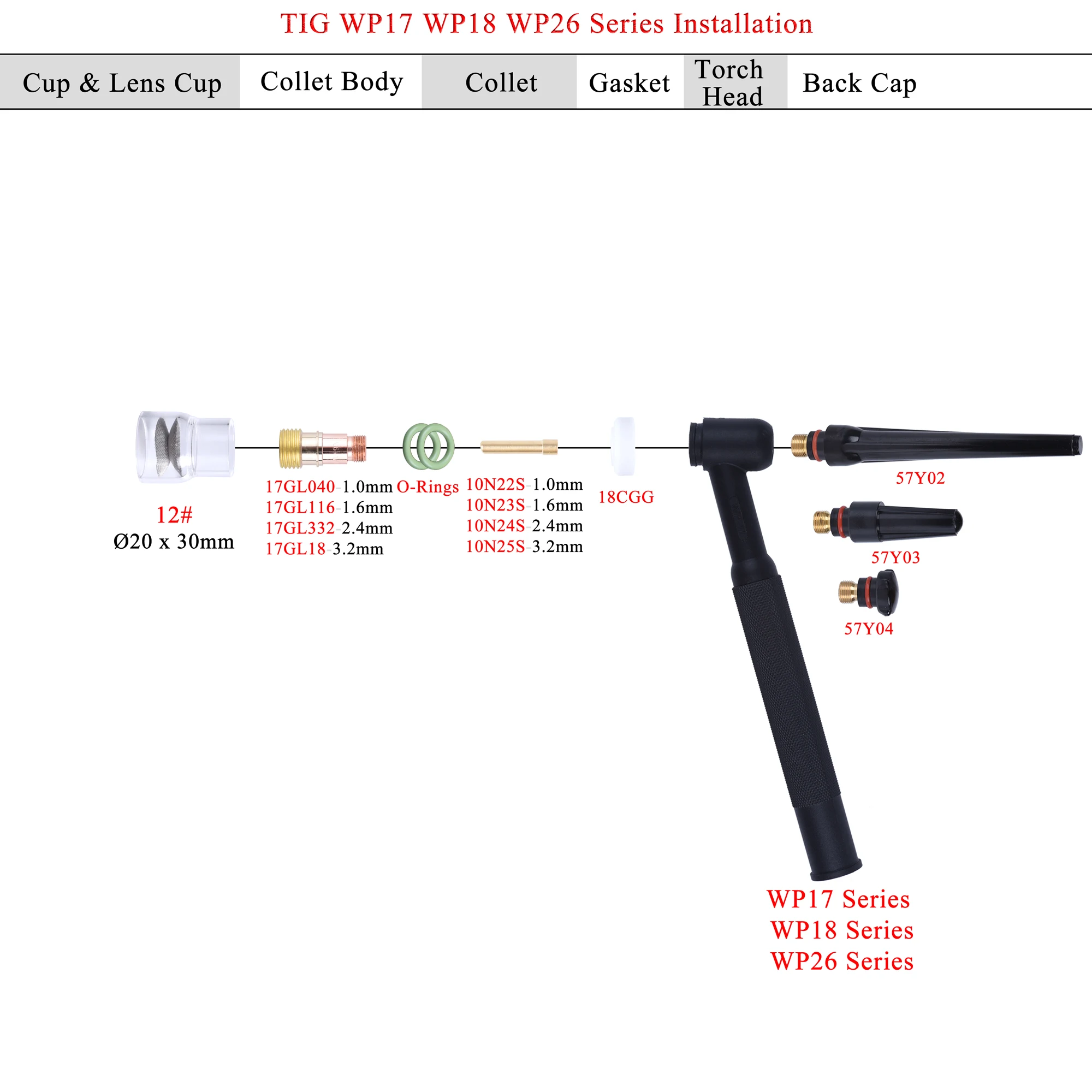 Набор горелок WP17, 18, 26, из пирекс-стекла, 12 шт., для сварки методом дуговой сварки, комплекты объективов