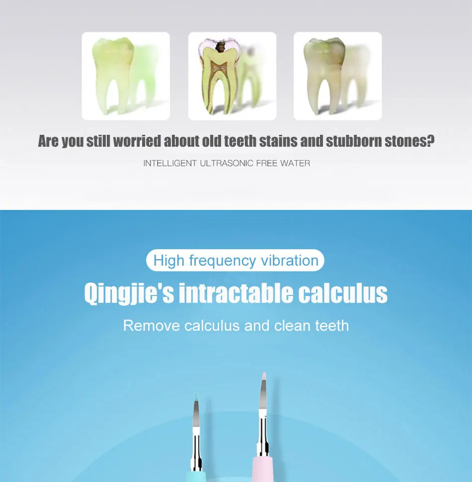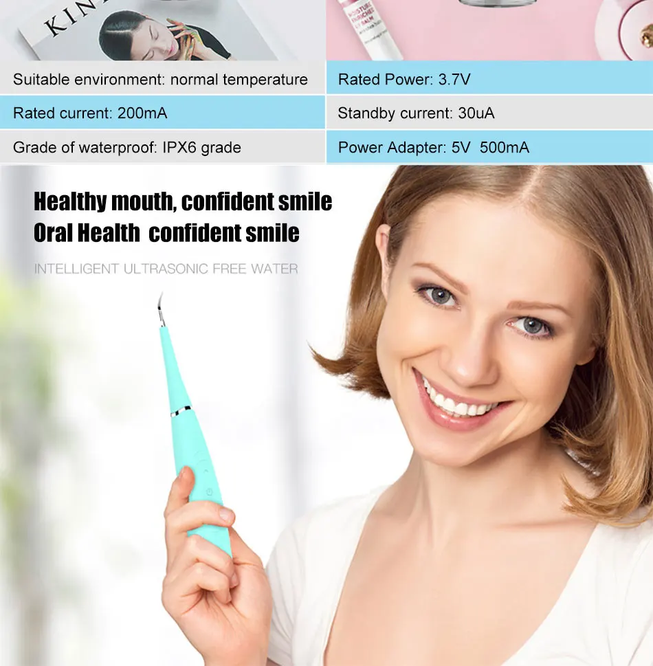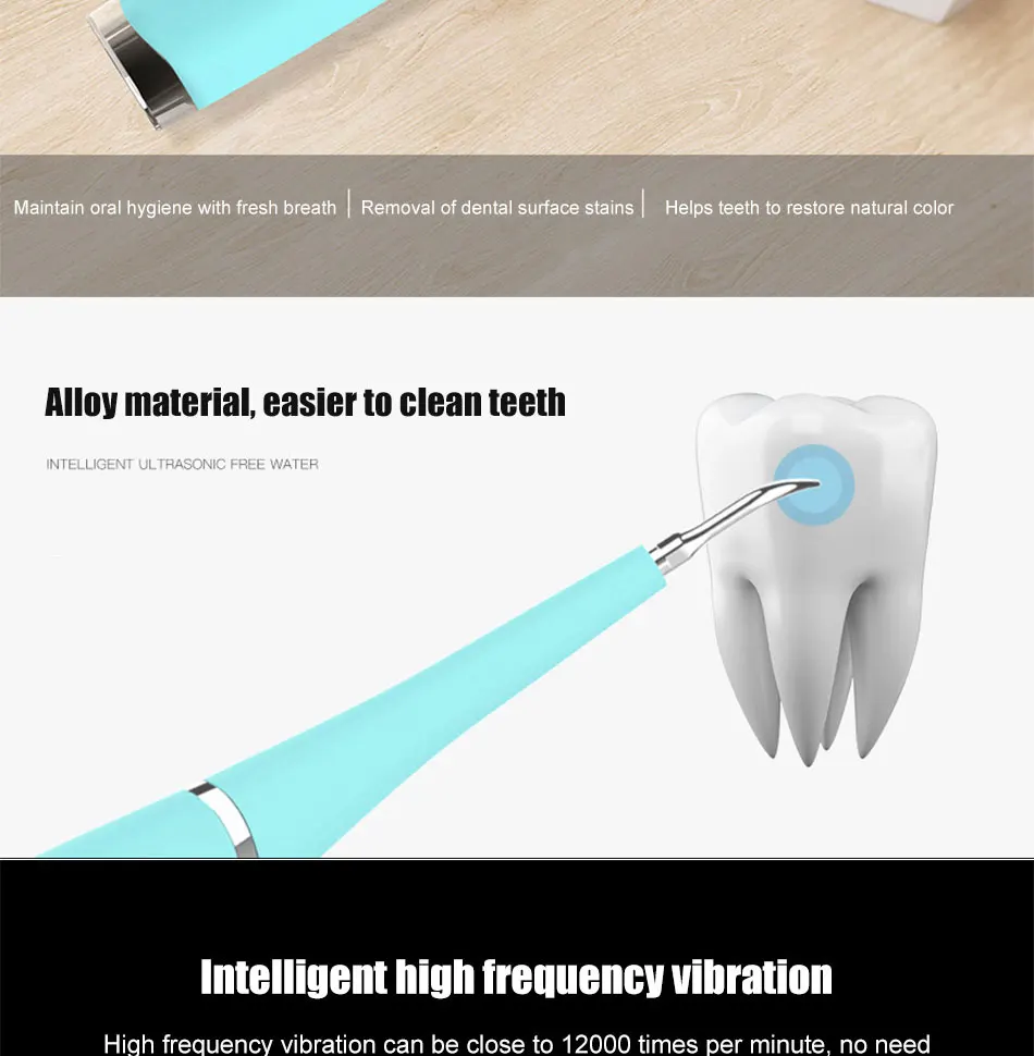 2. Высококачественный материал: продукт использует рабочие наконечники из легированной стали медицинского класса, чтобы легко удалить калькулятор, пятна чая и пятна от дыма.