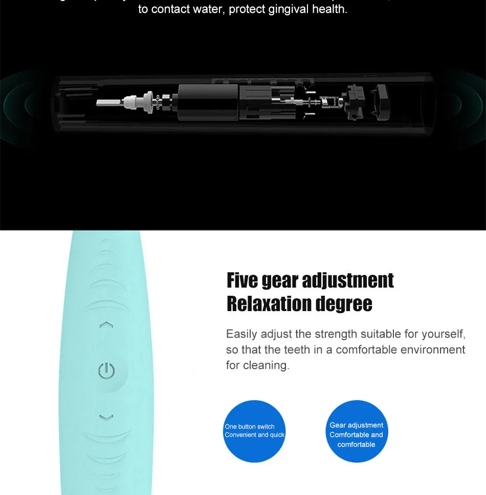 3. Пятискоростная Регулировка: продукт имеет 5 регулировок, которые могут легко регулировать прочность, подходящую для вашего собственного, так что зубы могут быть очищены в удобной среде.