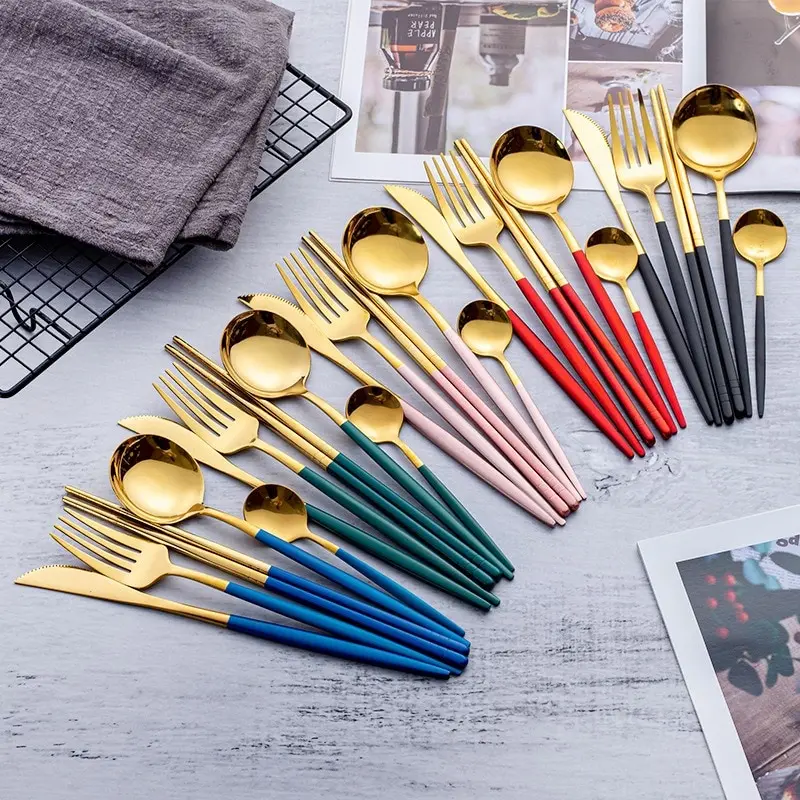 Столовые приборы из нержавеющей стали, столовые приборы, золотистая...