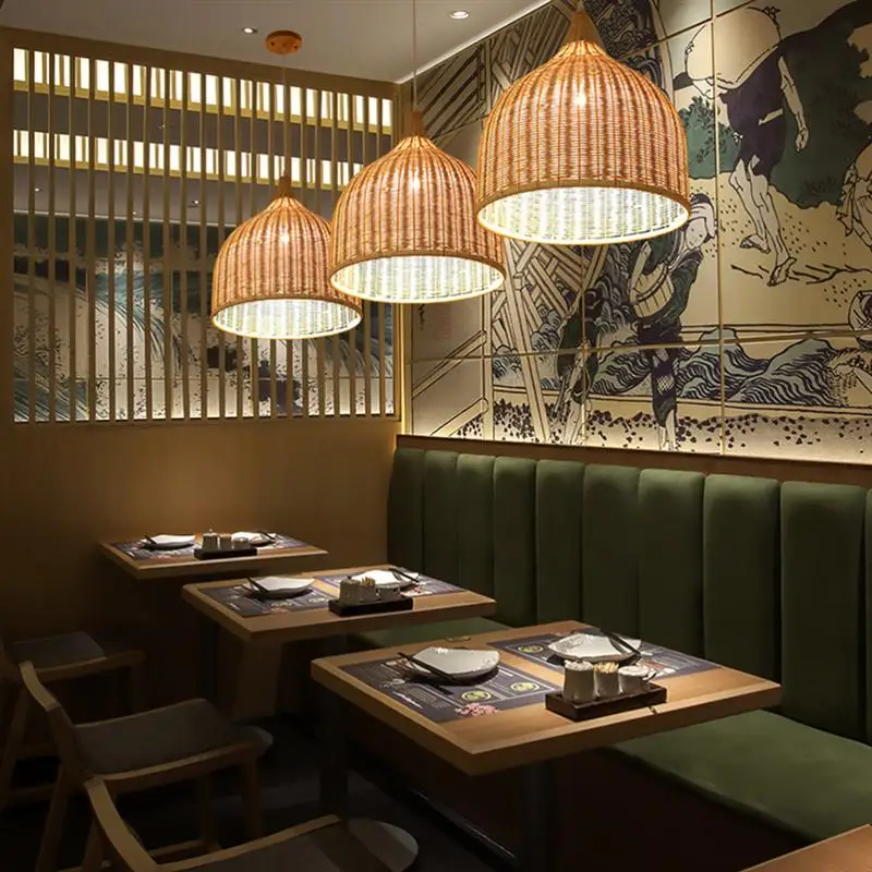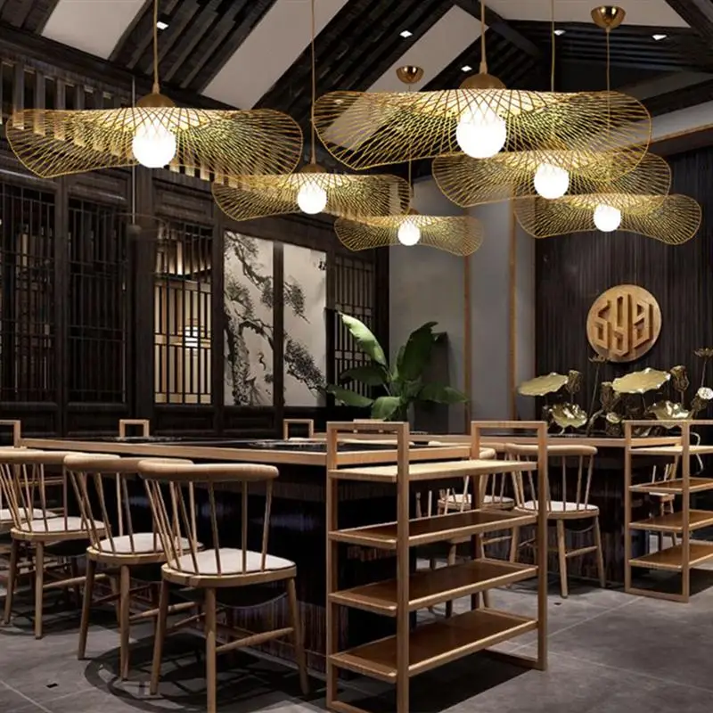 Бамбуковая люстра ручной работы, плетеный светильник из ротанга в стиле ретро, Бамбуковая художественная Подвесная лампа для кафе, бара, ресторана с источником светильник, 1 шт.