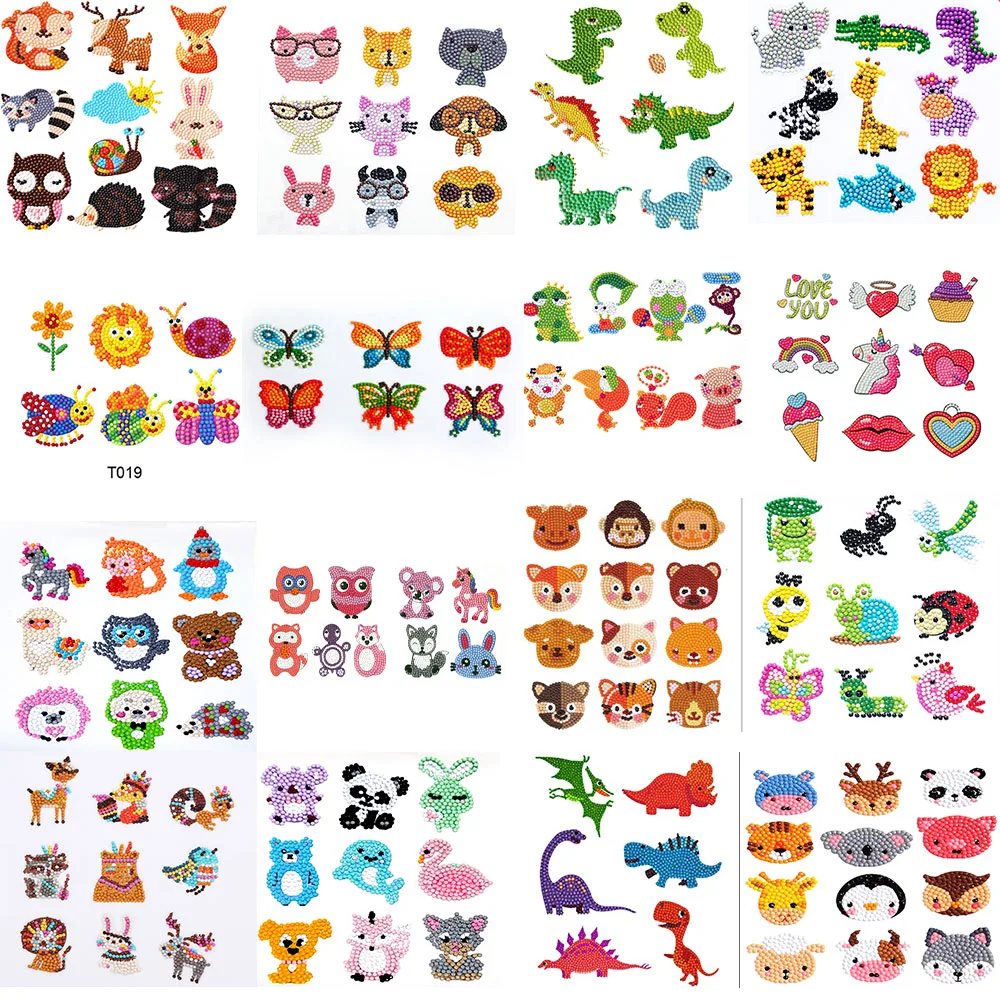 Набор для алмазной живописи, Набор наклеек 5D сделай сам с милым мультяшным динозавром, попугаем, бабочкой, рисунок по номерам, художественные изделия для детей