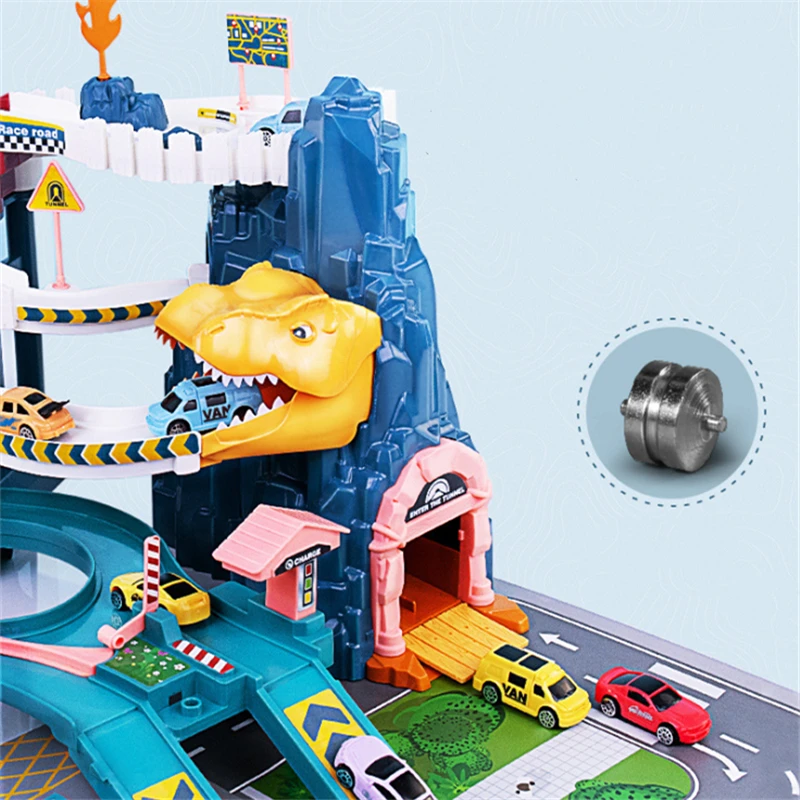 Электрический динозавр трек Железнодорожный автомобиль головоломка игрушки приключения обмотка дорога подарок на день рождения модель автомобиля для детей от 2 до 4 лет