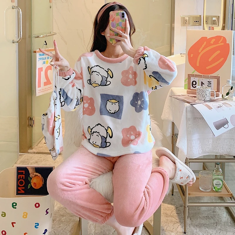 Пижама женская фланелевая, с длинным рукавом, Осень-зима