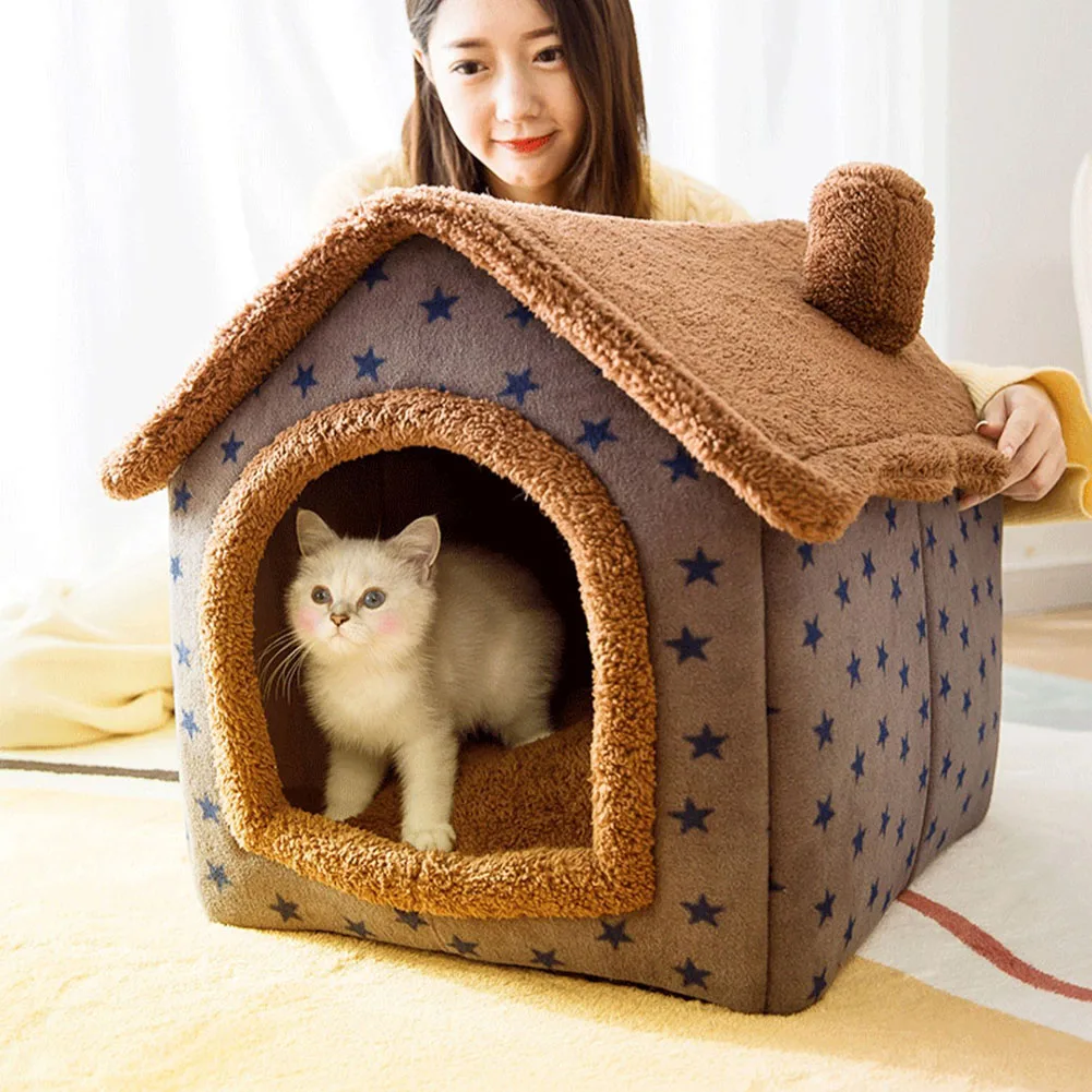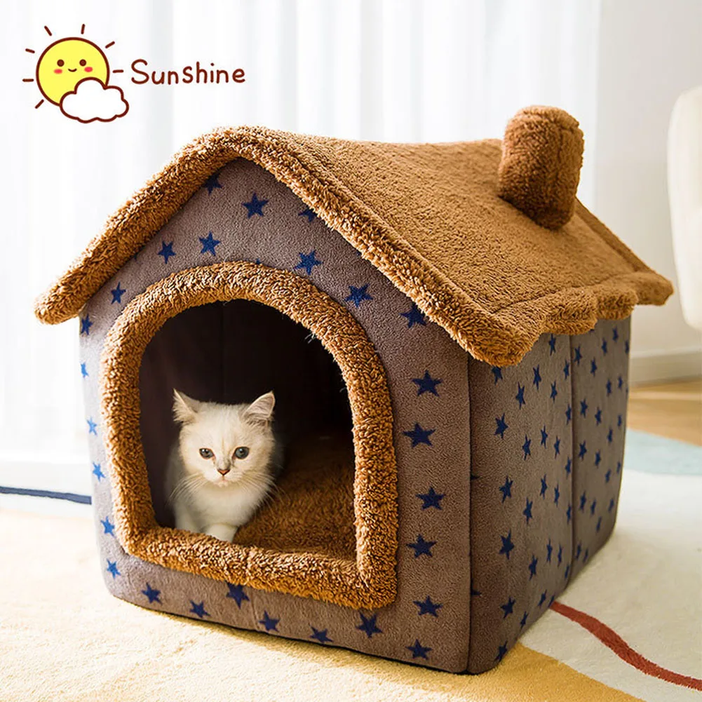 Съемный домик для домашних животных, теплая кофейная кровать для звездных питомцев, домик для собак, маленький домик для кошек, закрытый плюшевый спальный домик для домашних питомцев