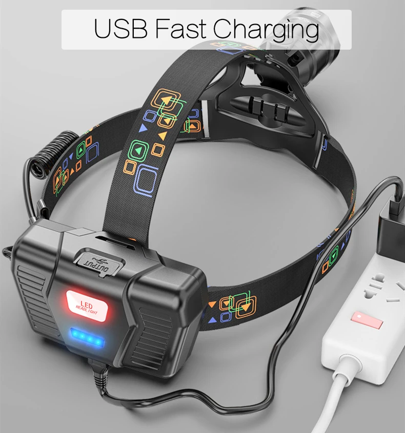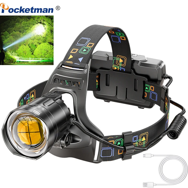 Мощный налобный фонарь XHP100, светодиодный налобный фонарь длиной 2500 м, налобный фонарь с USB-зарядкой, водонепроницаемый налобсветильник фонарь