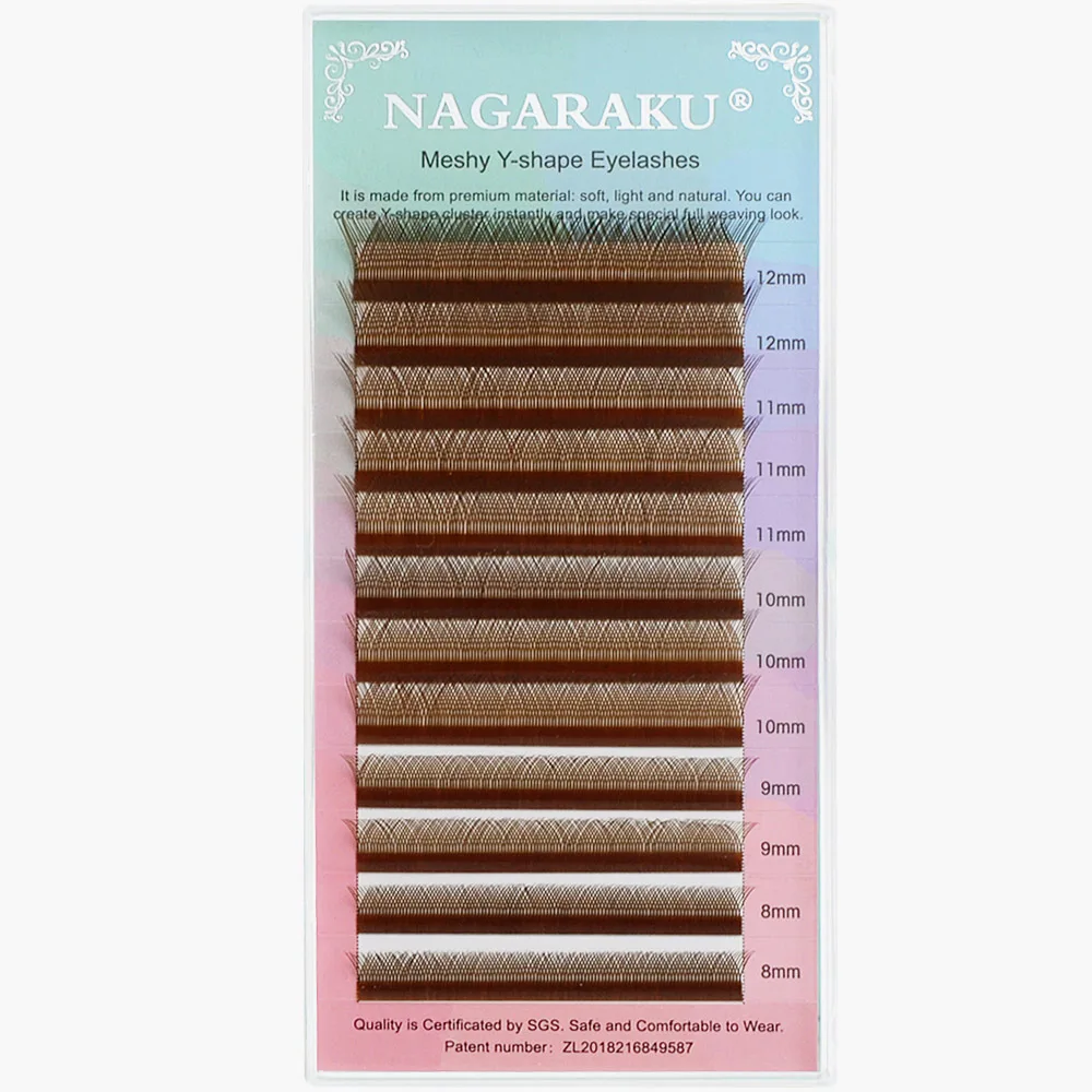 Коричневые Y-образные искусственные норковые ресницы NAGARAKU для наращивания, накладные ресницы, плетеные норковые ресницы, мягкие натуральные накладные ресницы с сеточкой