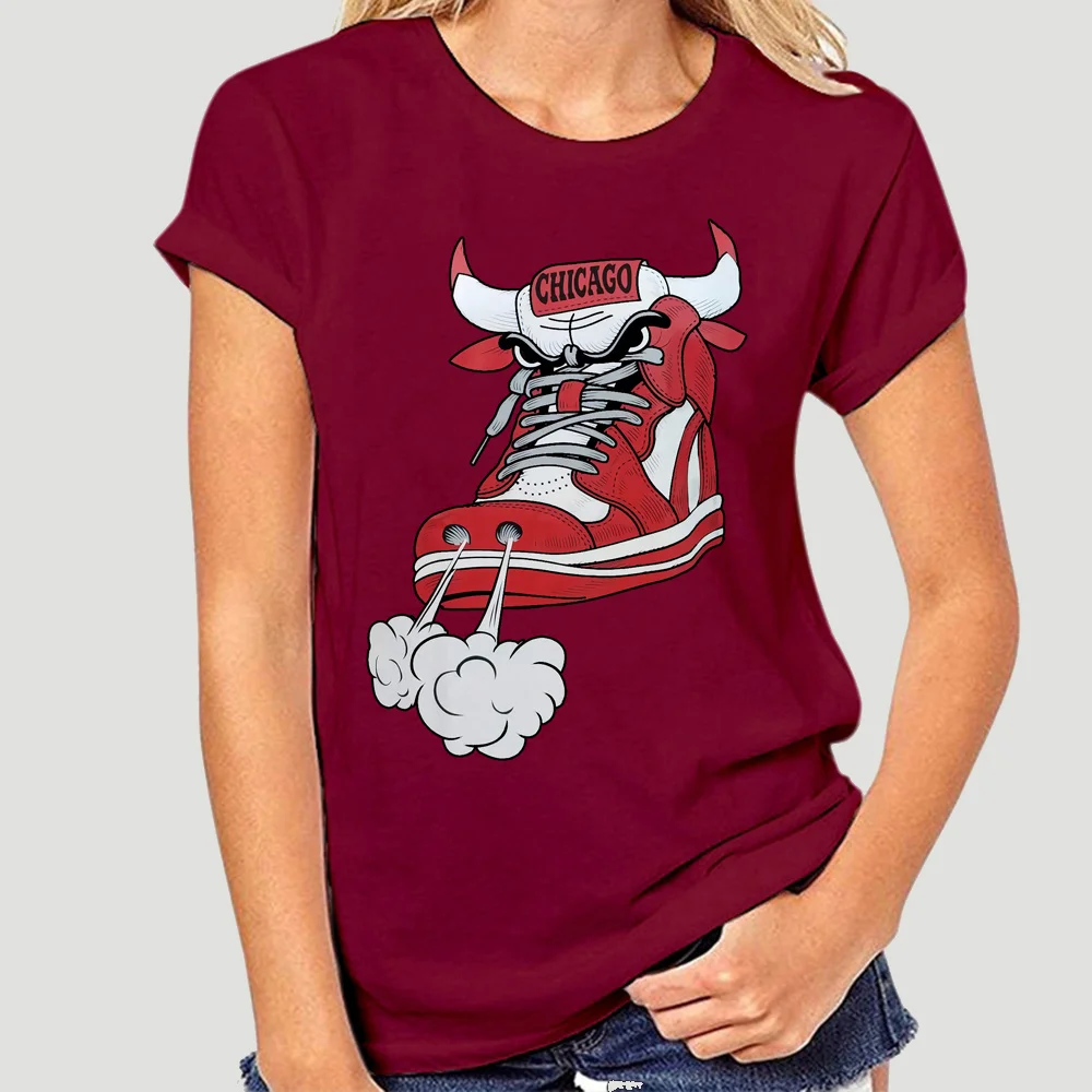 Новинка, Мужская футболка Chicago Shoe Bull, красная, белая, женска...