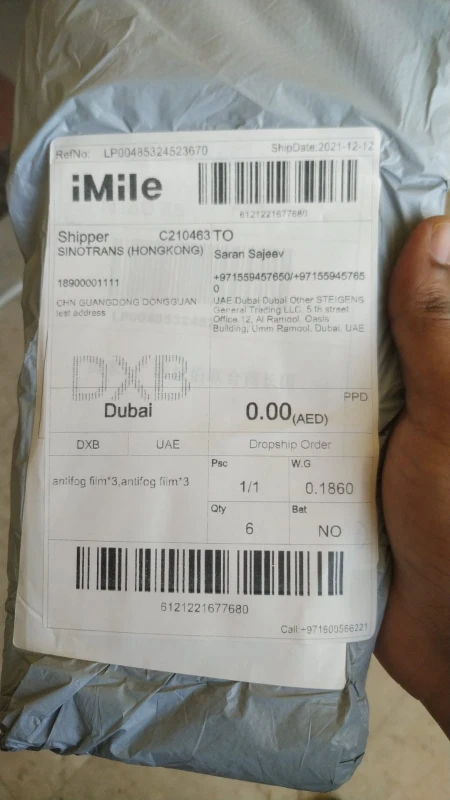 Страна: FR Color: Anti fog Ships From: China Доставка: Cainiao Super Economy Global 04.12.2021
