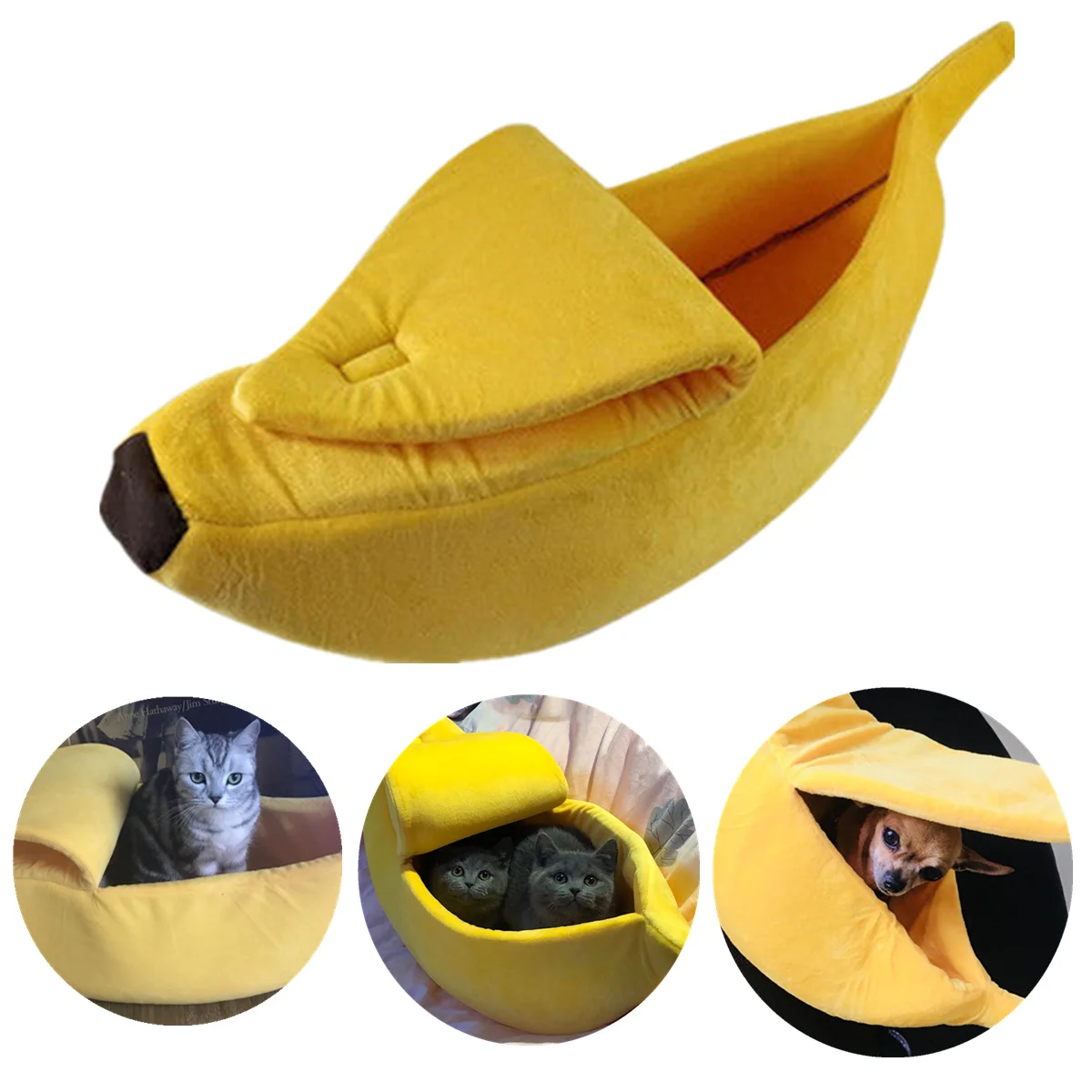 Забавный домик для кошек в форме банана, милый уютный коврик для кошек, мягкая пушистая теплая прочная переносная корзина для домашних животных, Конура, подушка для собак, товары для кошек