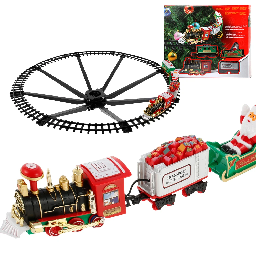Рождественский поезд, электрические игрушки, украшение для рождественской елки, рамка для поезда, железнодорожный автомобиль со звуком светильник, рельсовый автомобиль, рождественские подарки