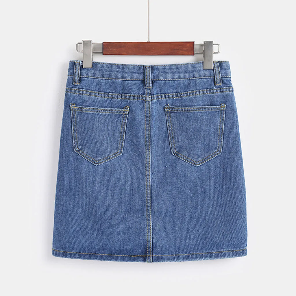 Модная Женская Юбка в стиле Харадзюку, джинсовая Юбка в стиле Харадзюку, однотонная корейская модная мини-Юбка на пуговицах, короткая мини-Юбка для отдыха, Женская